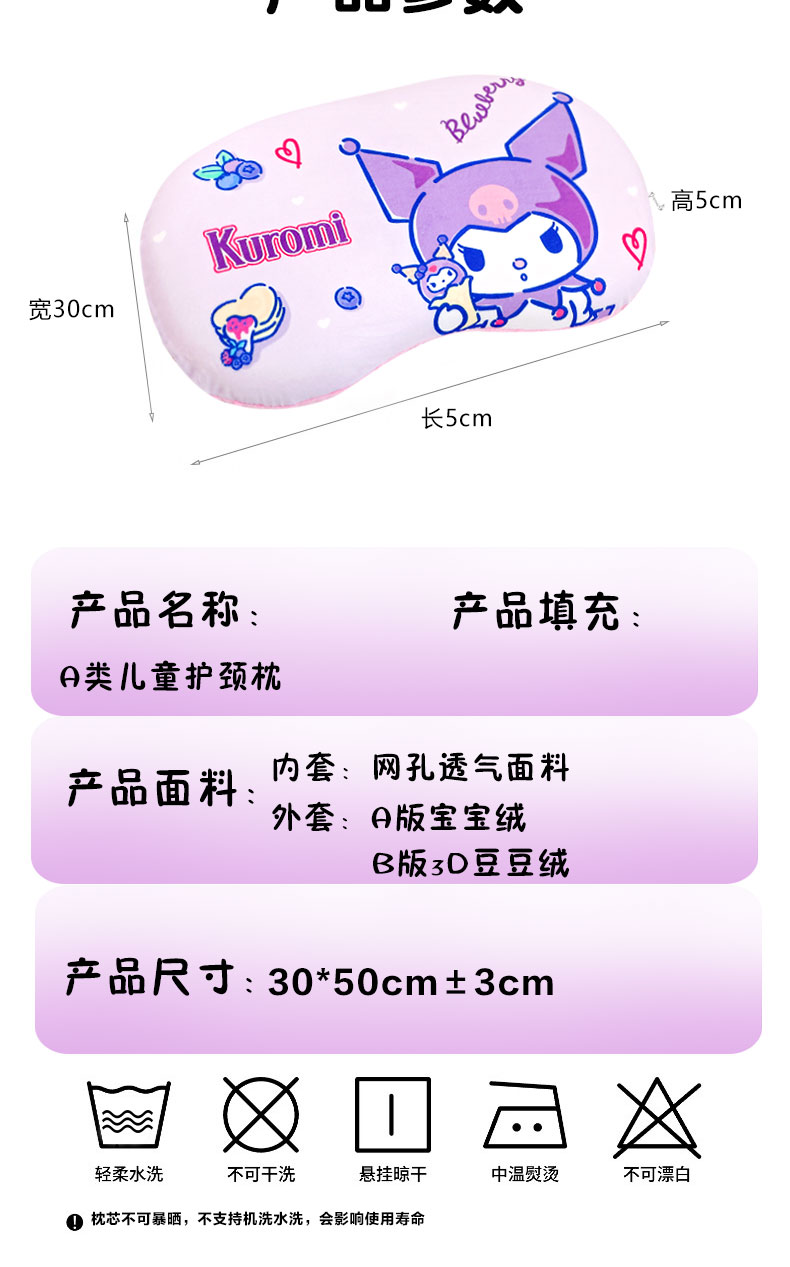 商品名称:(总)八零年代 2025新款三丽鸥正版授权儿童分区护颈枕健康睡眠记忆棉枕头枕套可拆洗