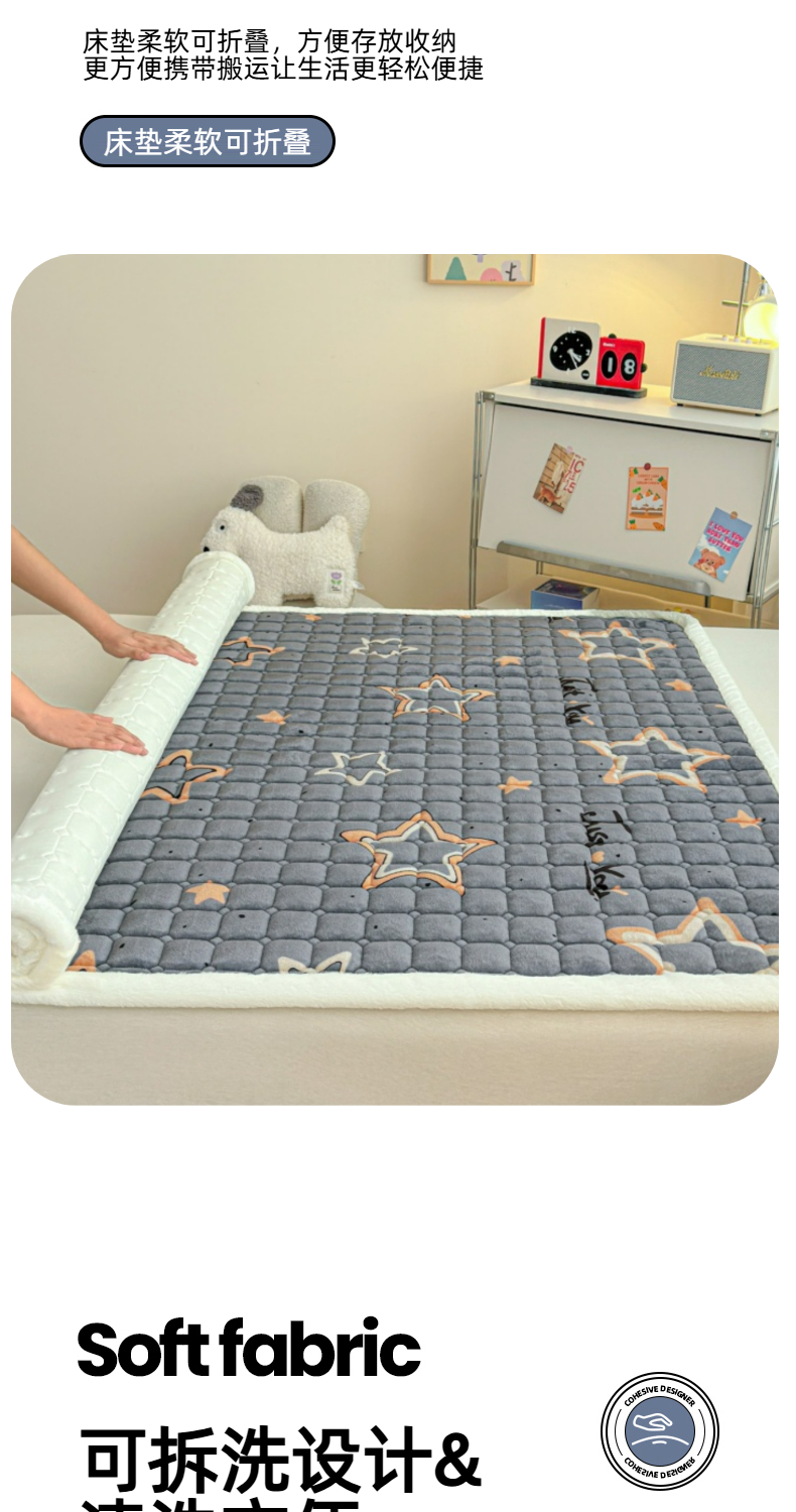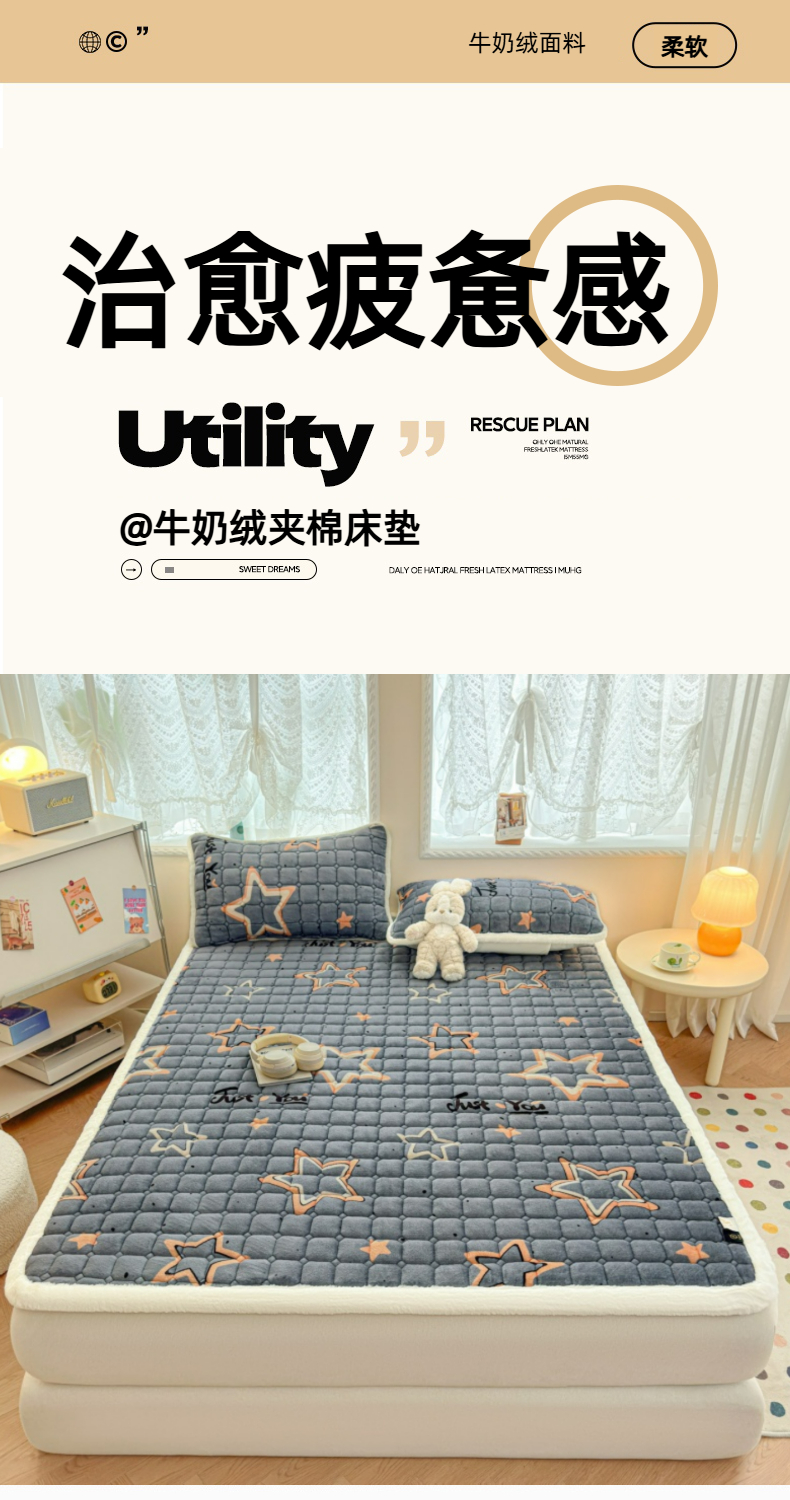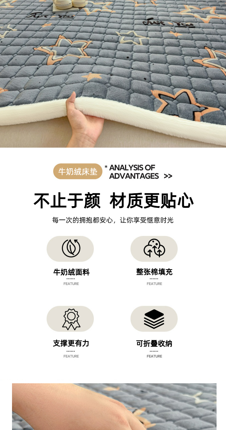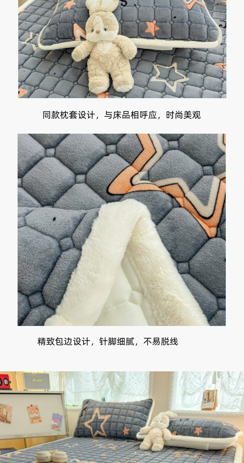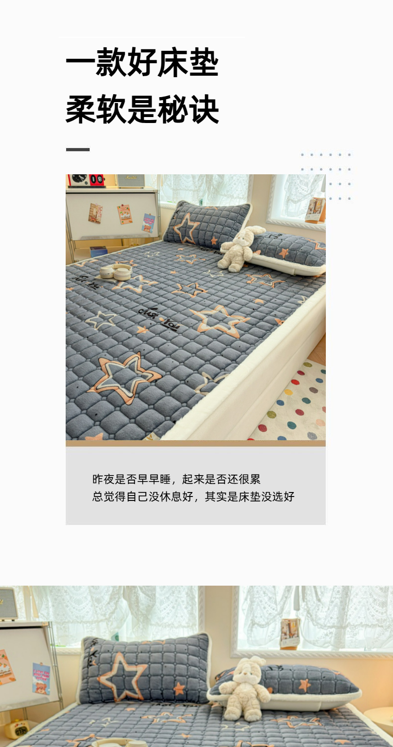 当前位置: 91家纺网 > 商品网购 > 床垫/床褥 > 普通床垫 > 爱屋及屋 2025新款牛奶绒印花床垫-大床款 星星灰