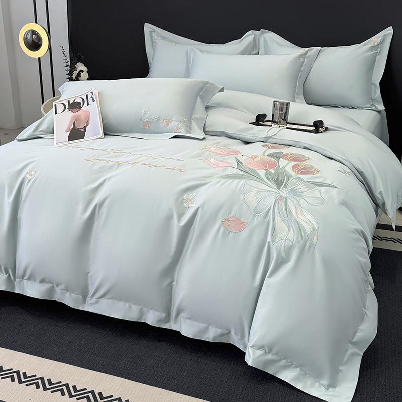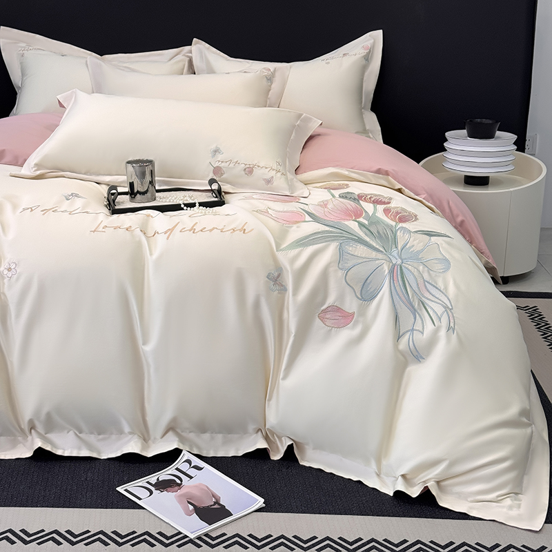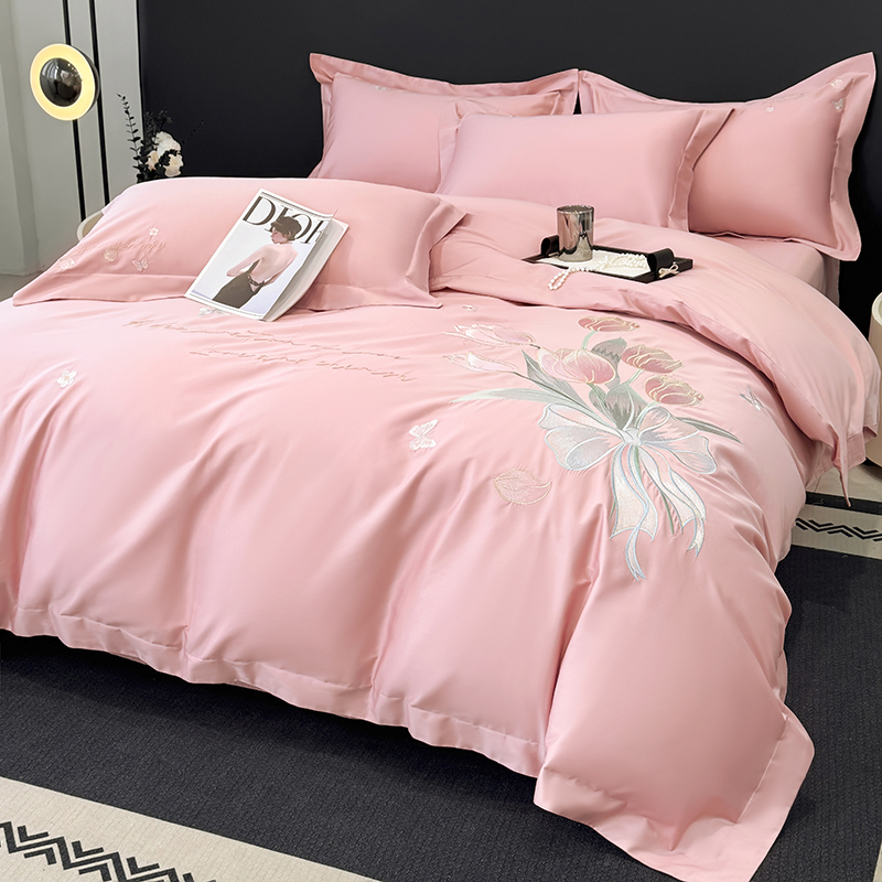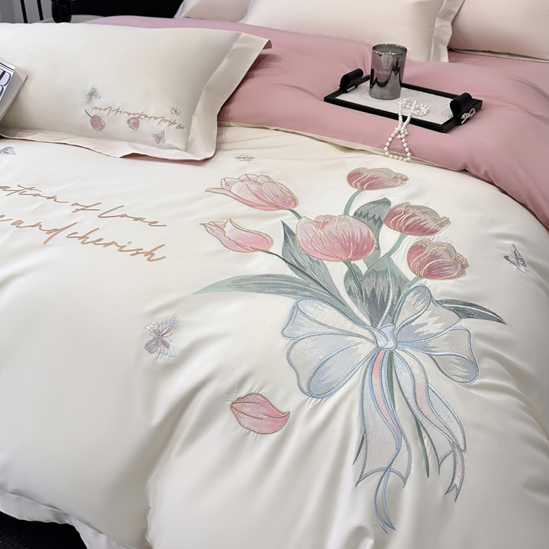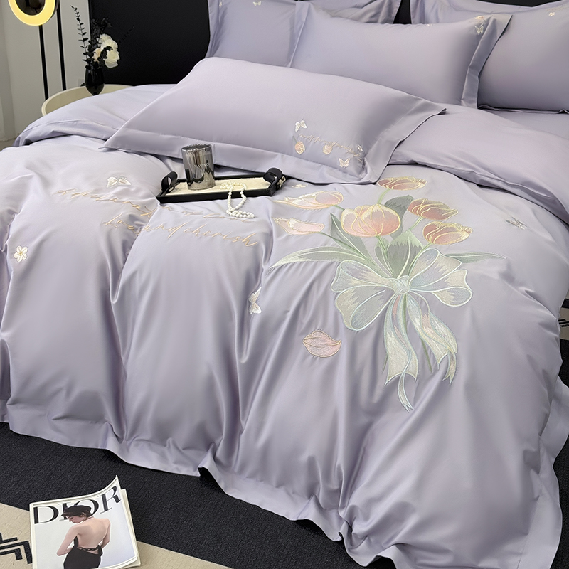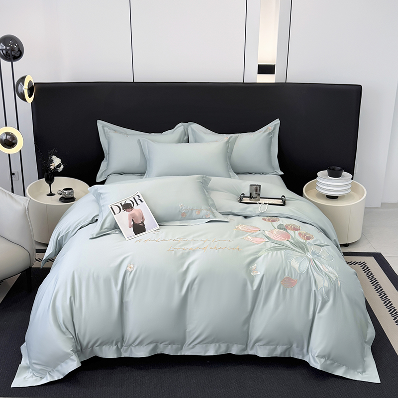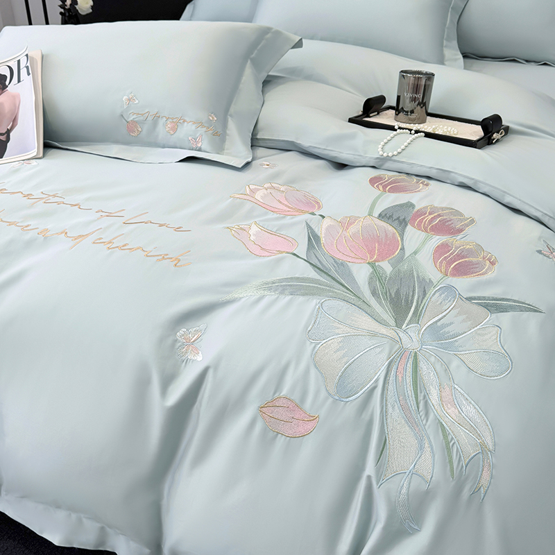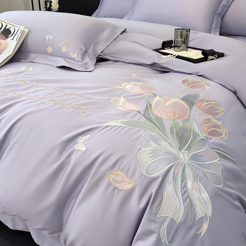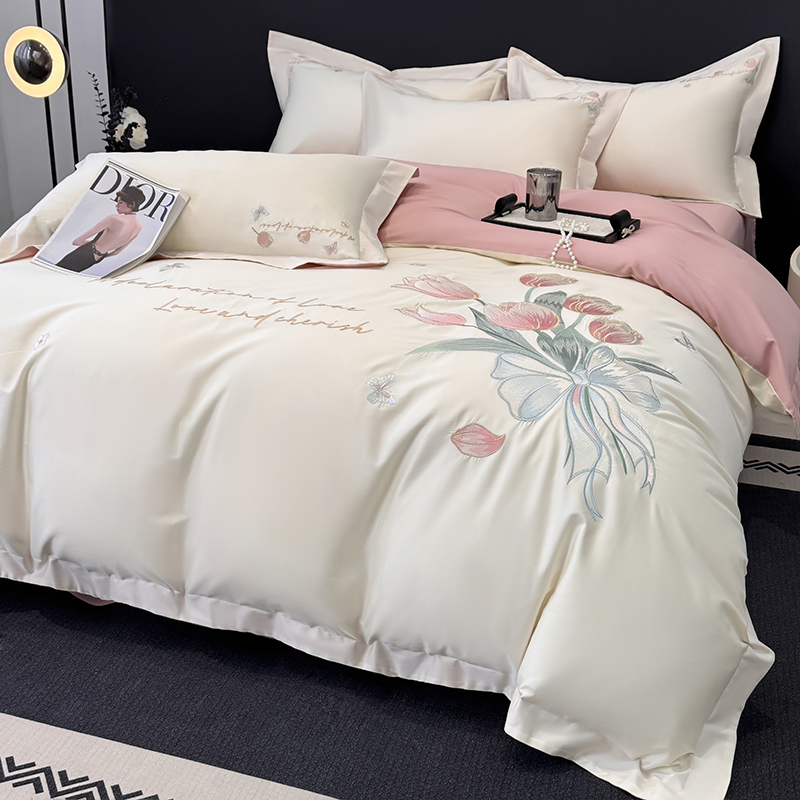 (总)2025新款刺绣亲肤棉简约高端四件套 郁金花束