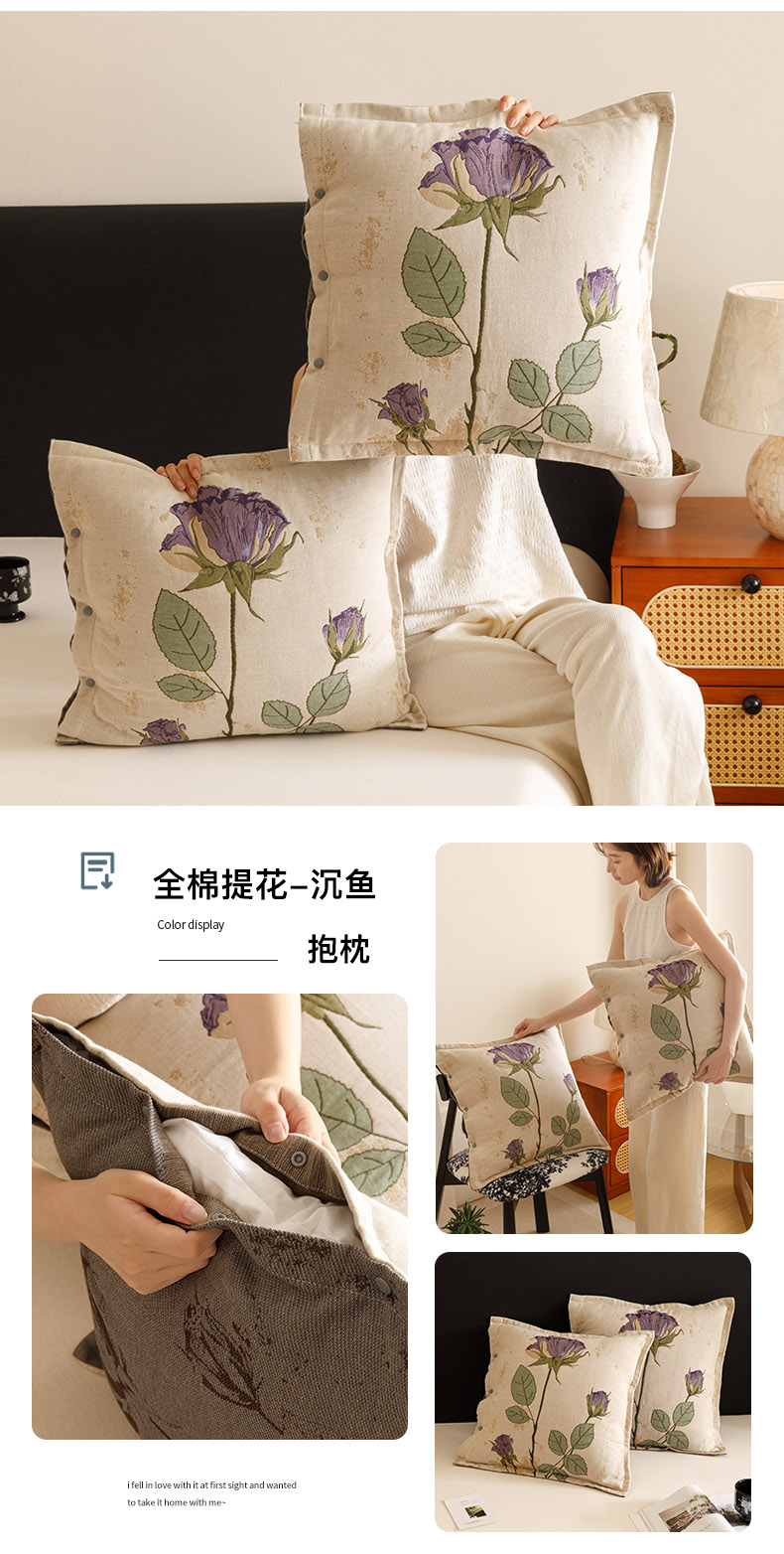 (总)爱港家纺 2025新款全棉纯棉纱布抱枕 靠枕 可拆洗 腰枕 客厅卧室汽车纯棉方枕套,闭月,沉鱼,古朴,锦团,落雁,雀阁,羞花,组合图 仅供展示不可下单