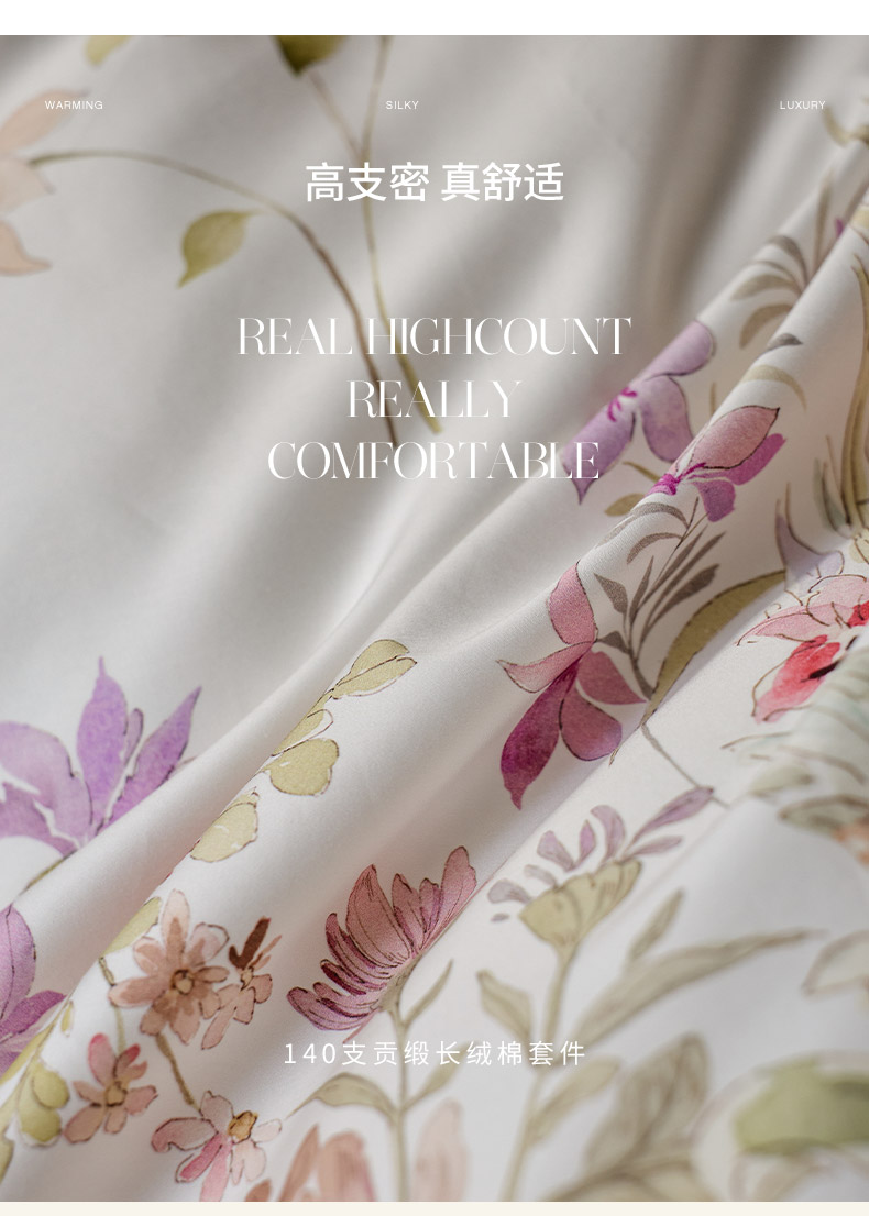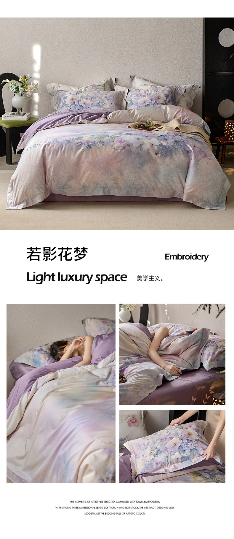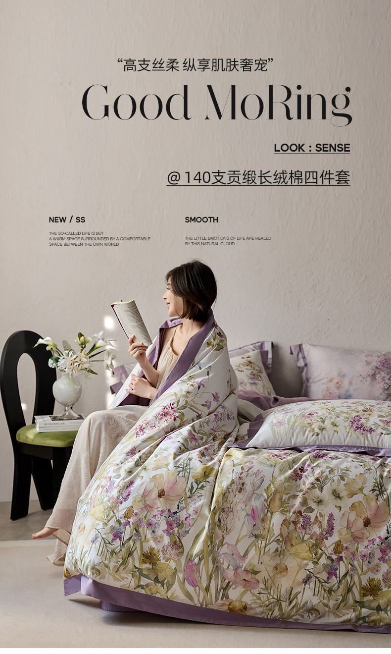 当前位置: 91家纺网 > 商品网购 > 床品套件 > 四件套 > 长绒棉四件套 > 轩和家居 2025新款70SA类轻奢长绒棉纯棉花四件套正品YKK拉链+精品做工 第一组 云雾晨曦
