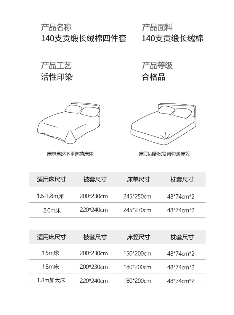 【床笠款】1.8四件套-被套200x230 | ¥340.00 |