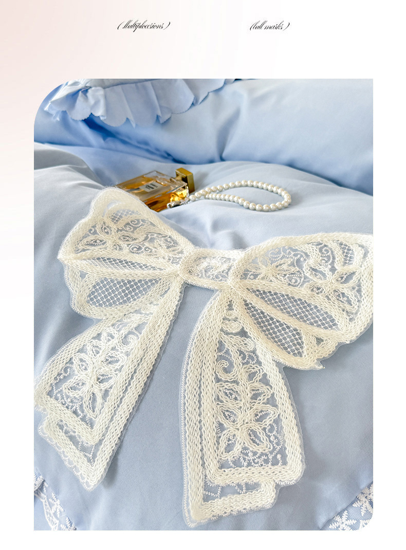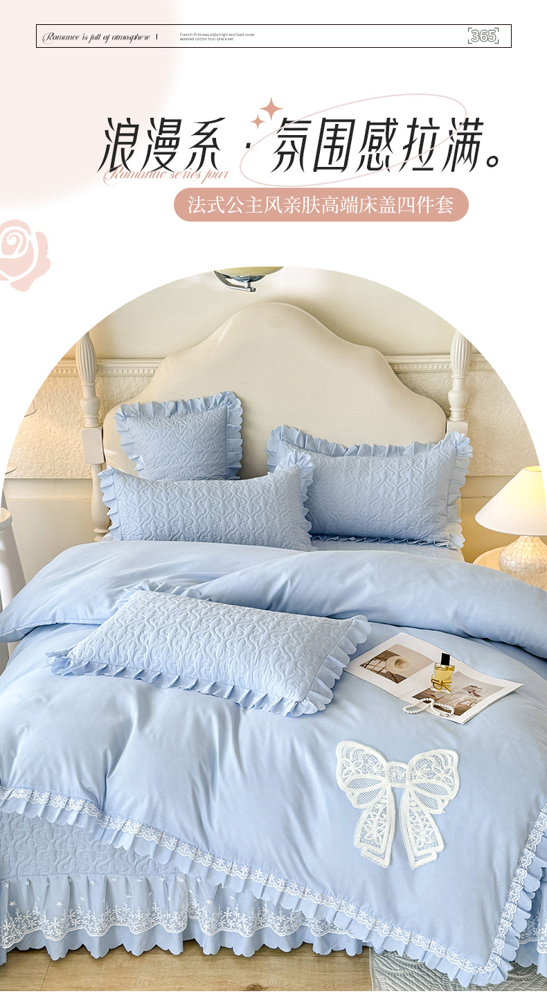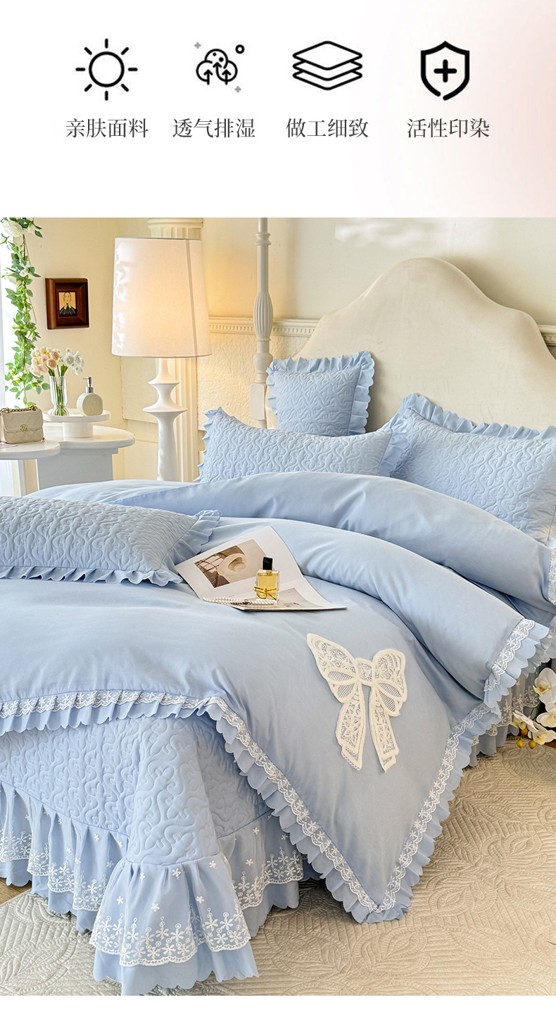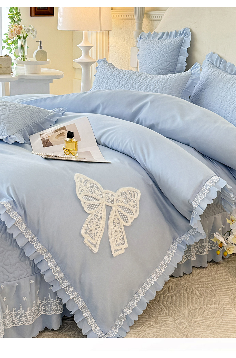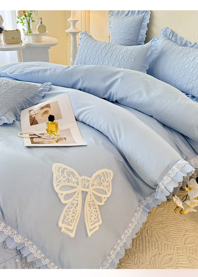 当前位置: 91家纺网 > 商品网购 > 床品套件 > 四件套 > 其它四件套 > 后庭寝室 2025新款法式公主风亲肤床盖四件套-蝶恋系列 蝶恋-浅蓝