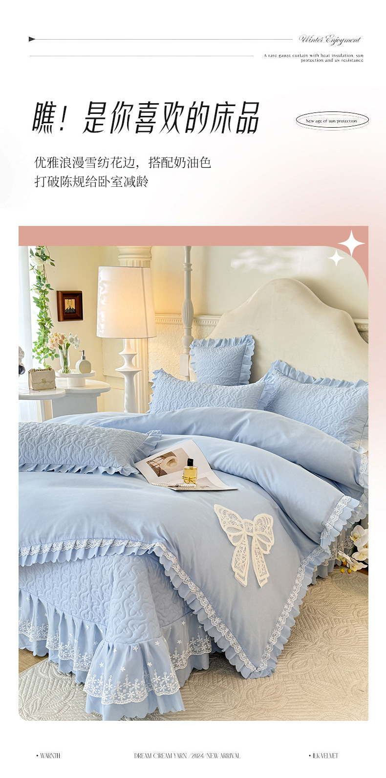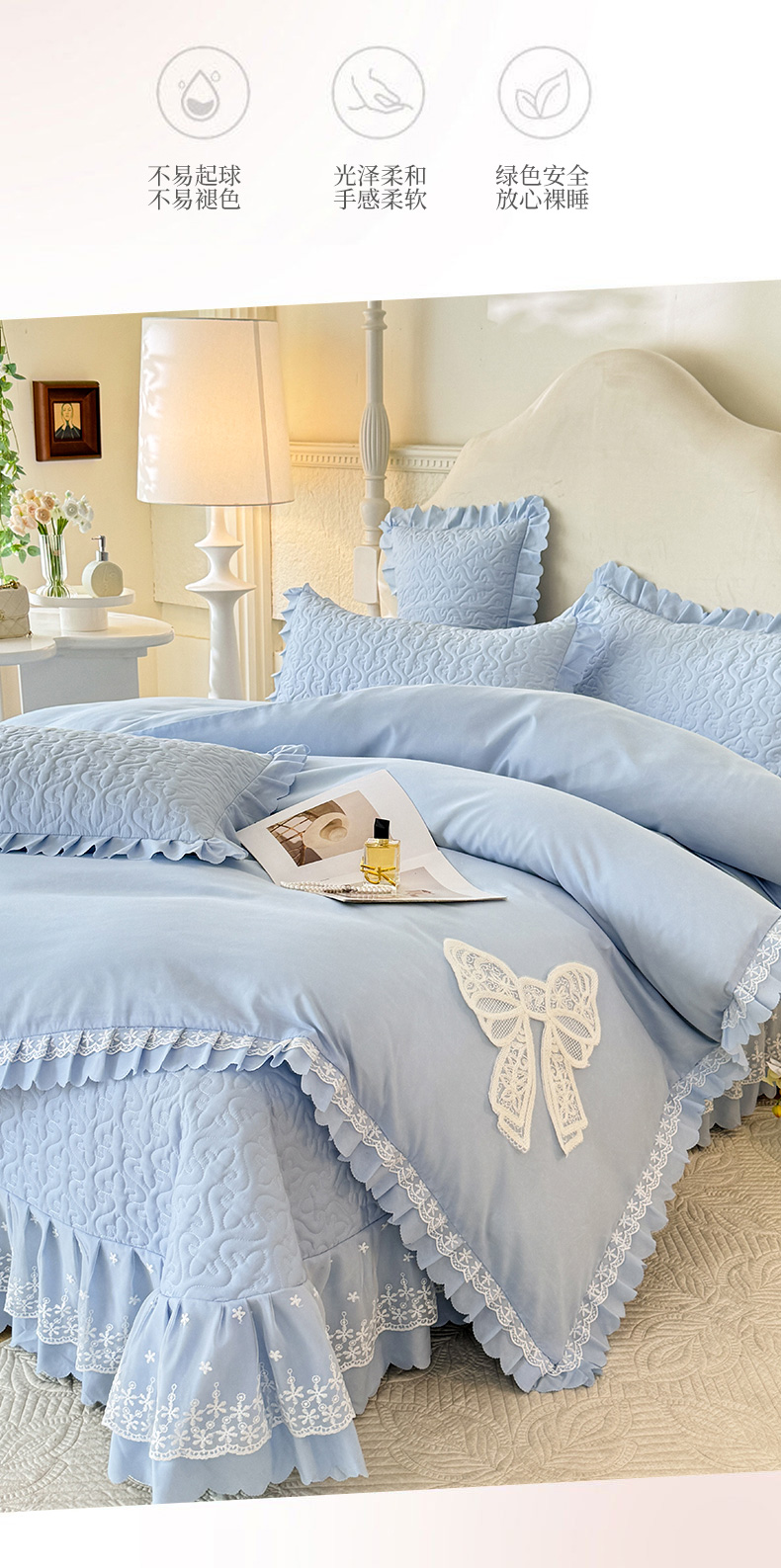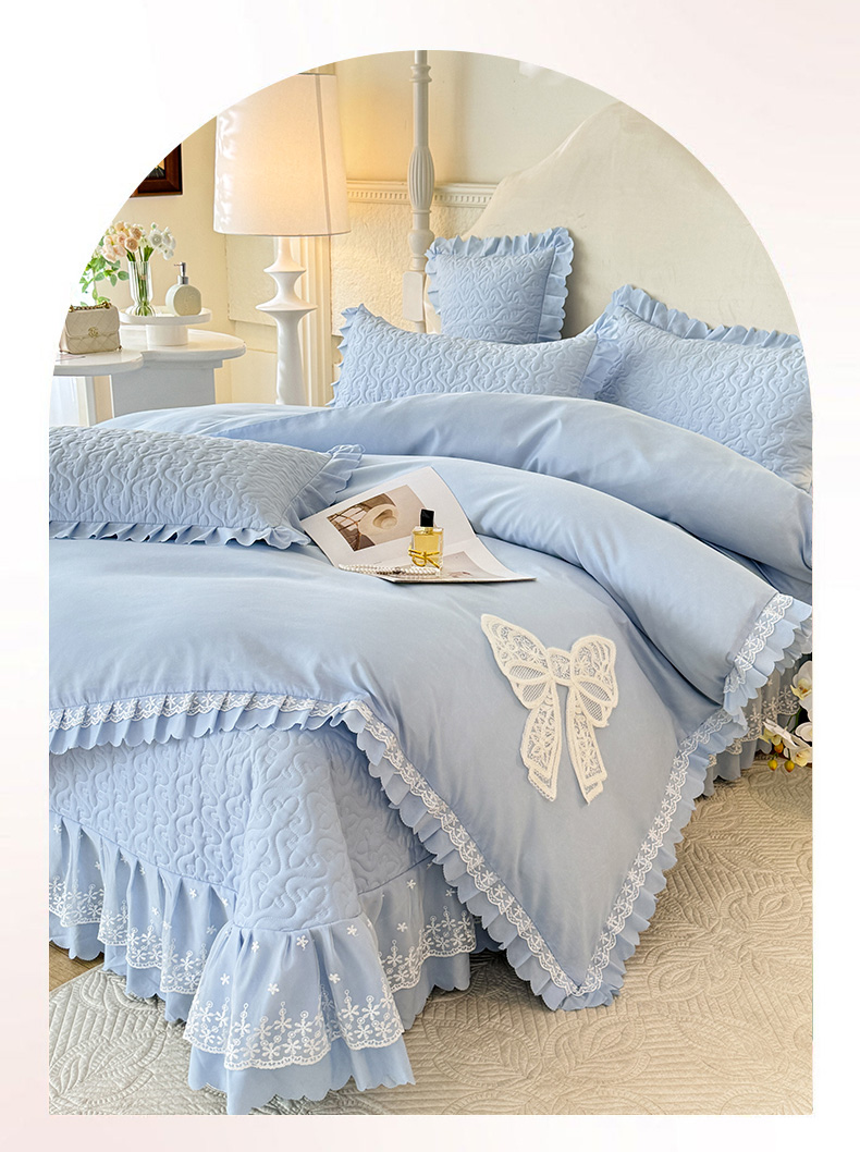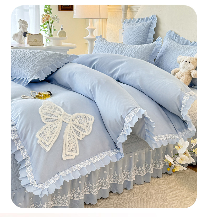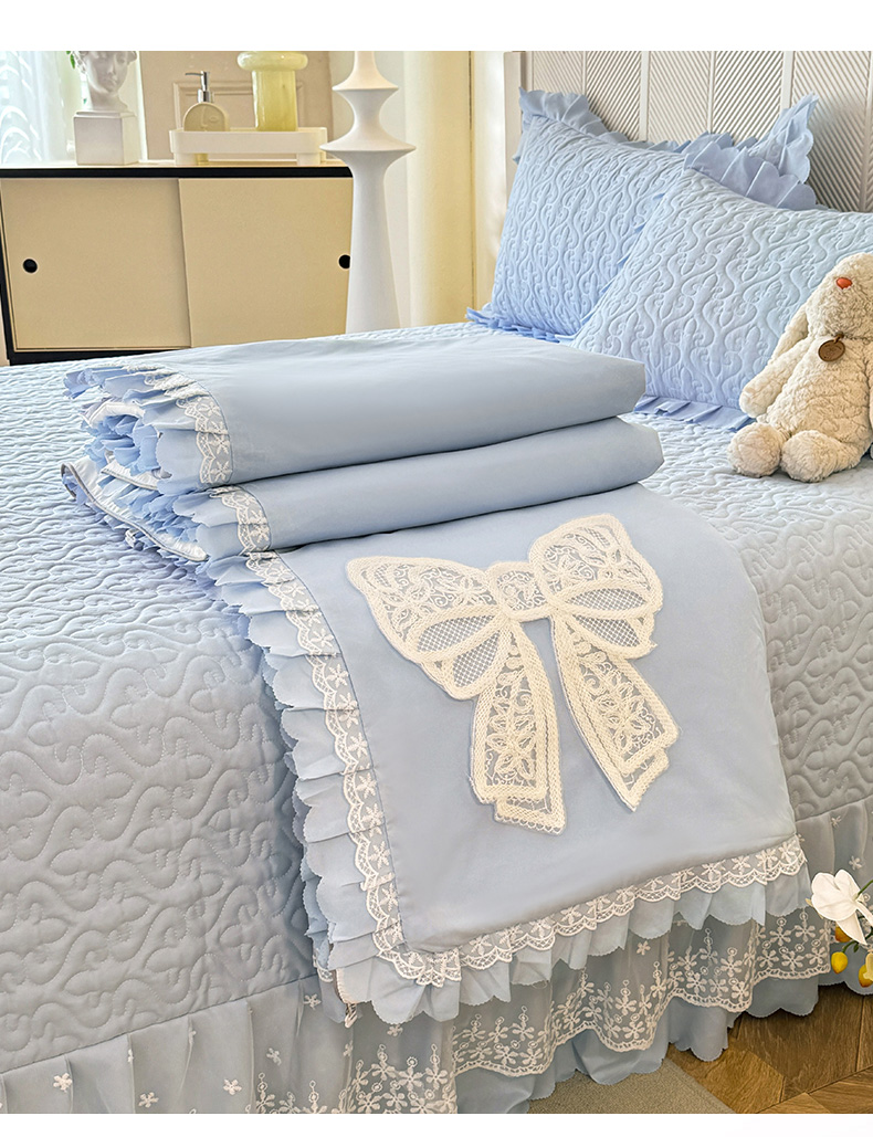 当前位置: 91家纺网 > 商品网购 > 床品套件 > 四件套 > 其它四件套 > 后庭寝室 2025新款法式公主风亲肤床盖四件套-蝶恋系列 蝶恋-浅蓝