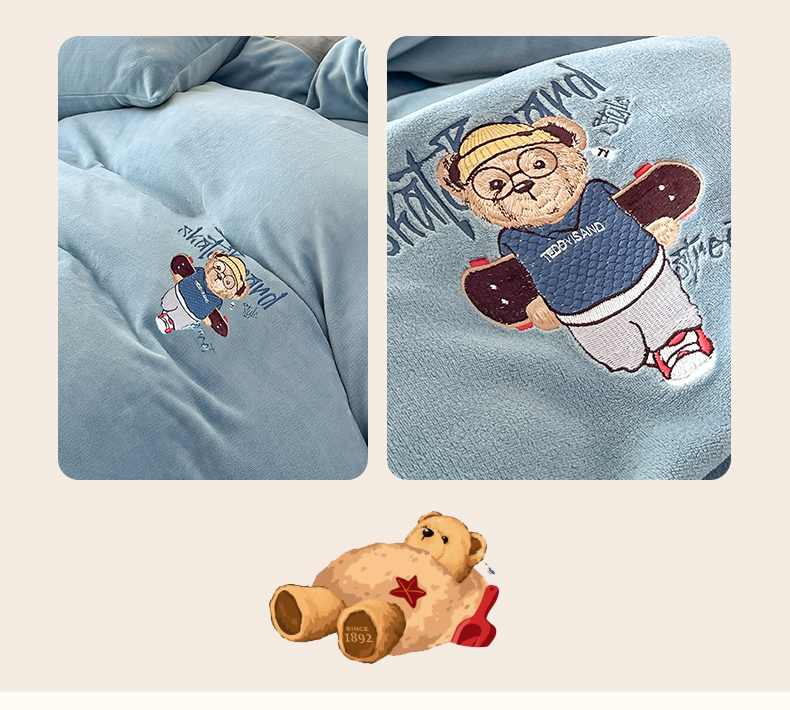 (总)泰迪爱兰Teddy ISLAND 2025新款IP绣花牛奶绒刺绣套件,豆沙+浅灰,奶黄+浅咖,奶油白+清绿,奶油白+星空蓝,浅灰+银灰,清绿+银灰,珊瑚粉+银灰,星空蓝+浅灰,星空蓝+银灰,薰衣紫+浅灰