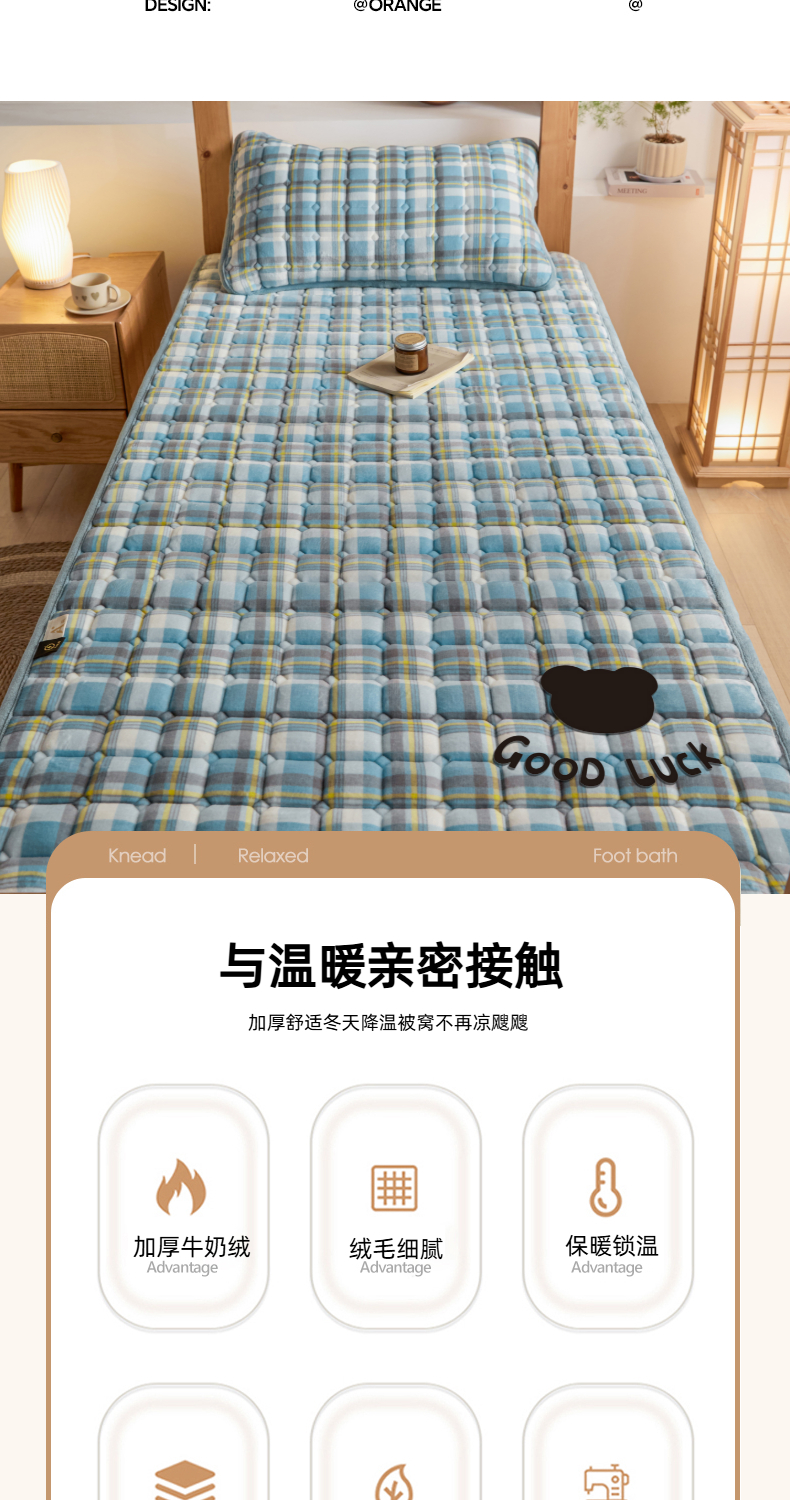 商品名称:(总)爱屋及屋 2025加厚牛奶绒格子床垫软垫加绒加厚床褥垫床护垫铺底毛绒垫子【200g填充】