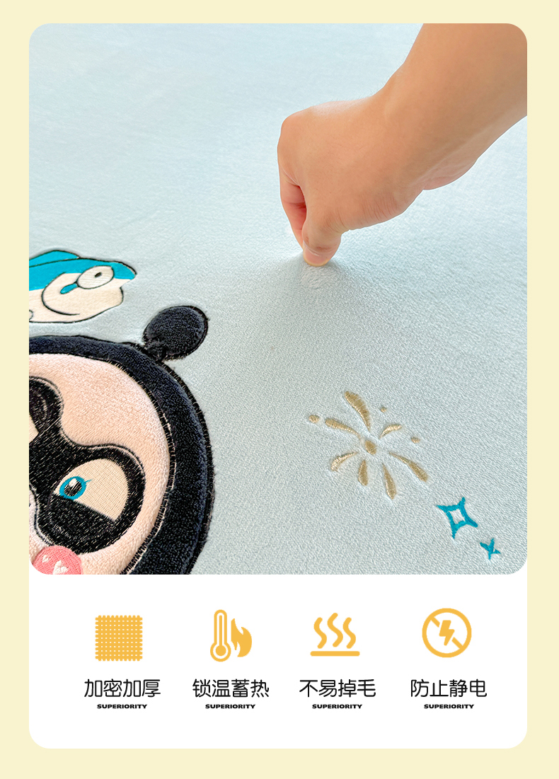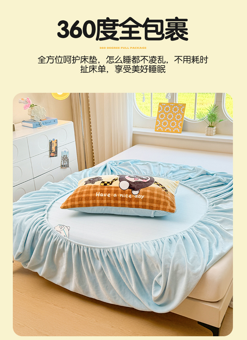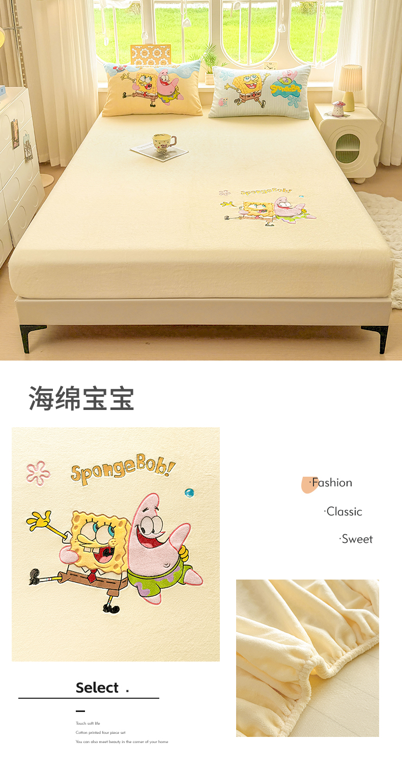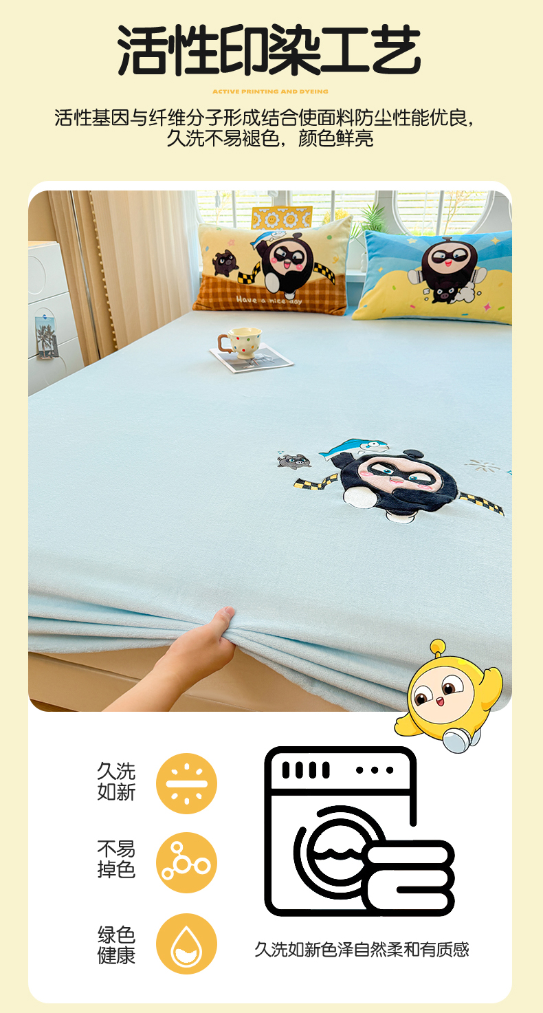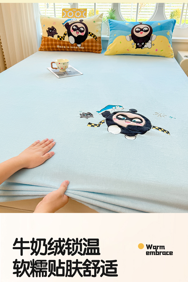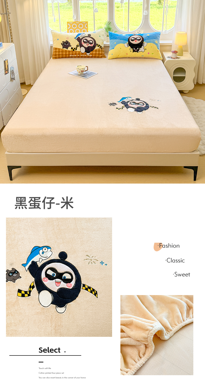 商品名称:(总)雯豆家纺 正版授权IP纯色贴布绣牛奶绒床笠三件套加厚卡通床垫保护套