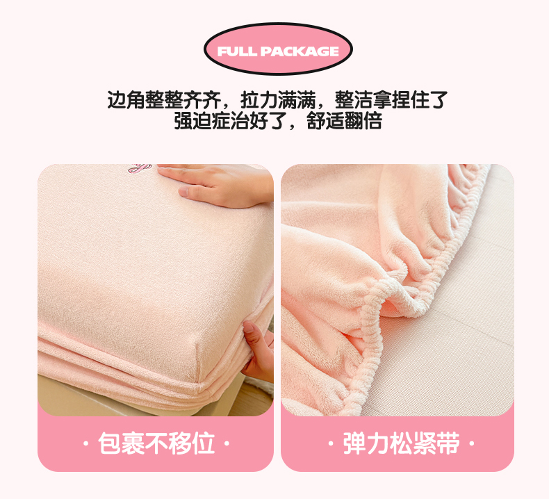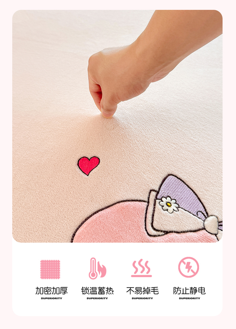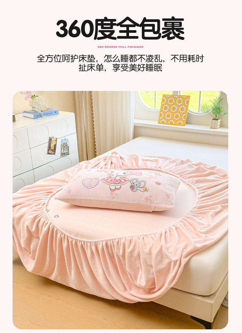 • 91家纺网 家纺一手货源 找家纺 雯豆家纺 正版授权IP纯色贴布绣牛奶绒床笠三件套加厚卡通床垫保护套 美乐蒂
