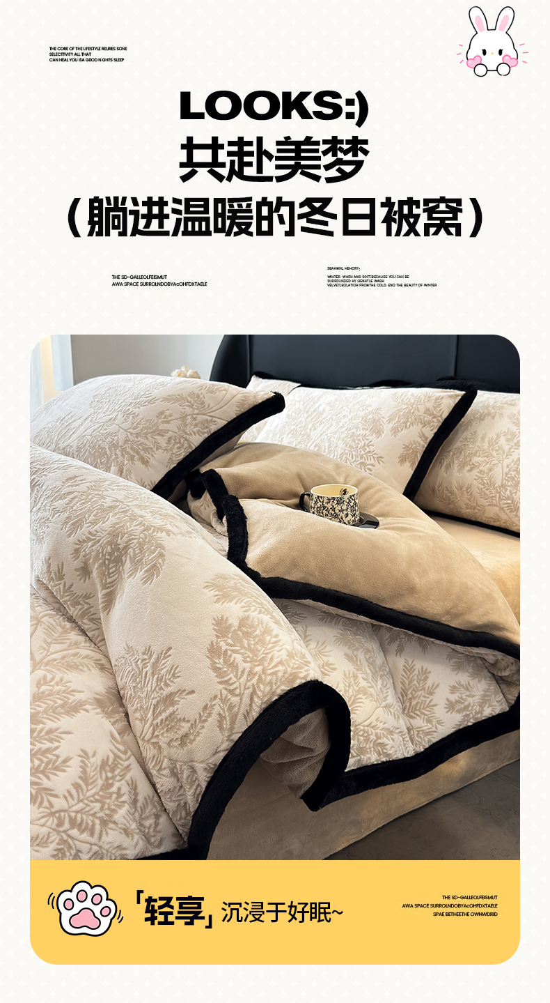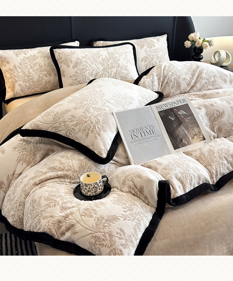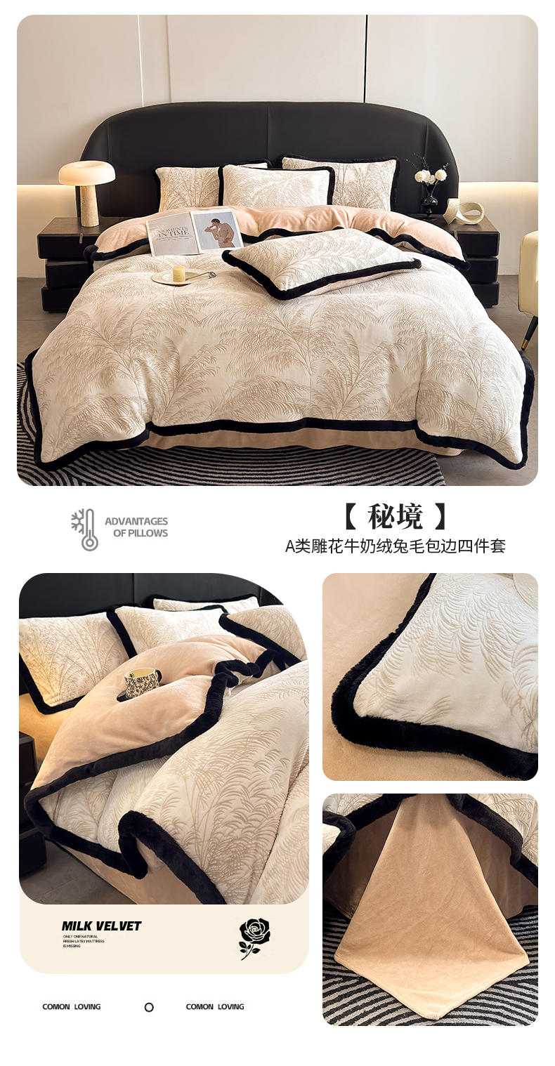 商品名称:卡罗兰 2025新款雕花牛奶绒兔毛包边四件套秘境2