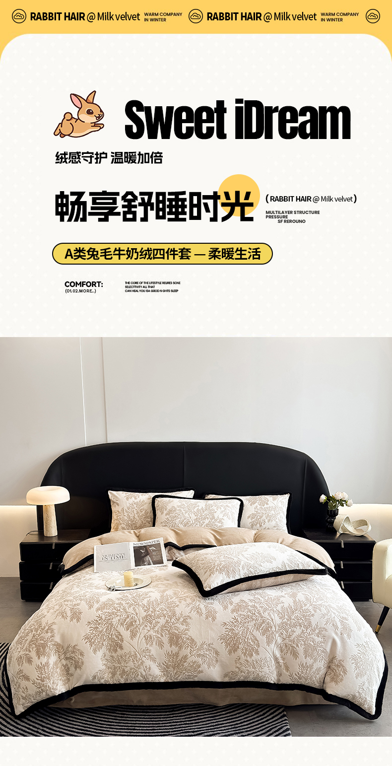 卡罗兰 2025新款雕花牛奶绒兔毛包边四件套秘境2