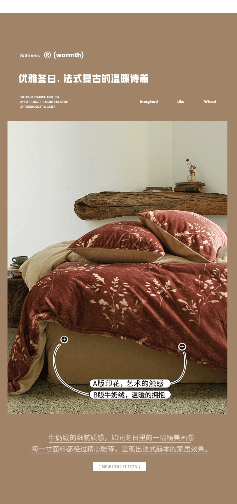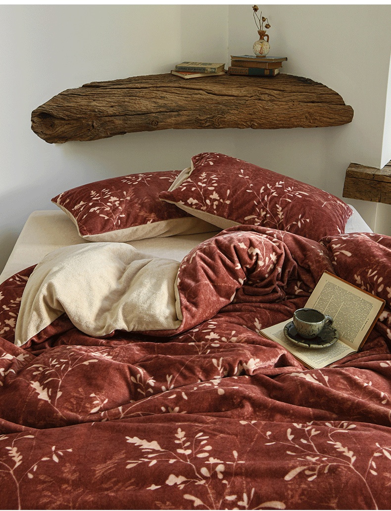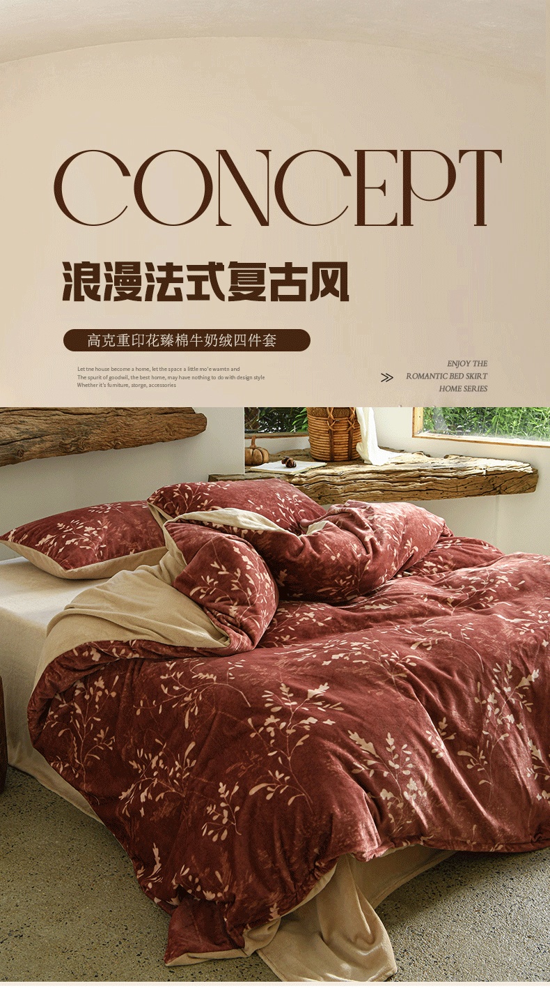 当前位置: 91家纺网 > 商品网购 > 床品套件 > 四件套 > 牛奶绒四件套 > 花漾家居 2025秋冬新品法式复古简约诧寂风牛奶绒四件套 鎏金岁月红