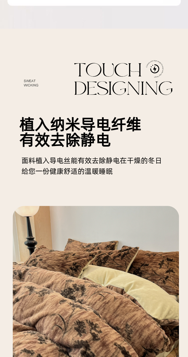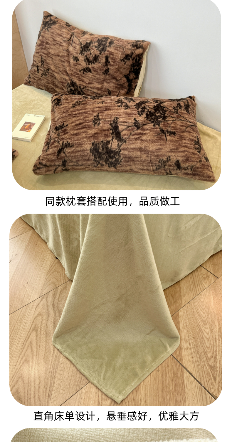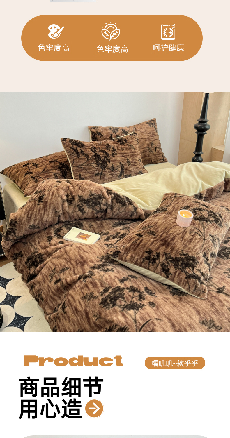 商品名称:金爱家 2025新款全消光牛奶绒A类赫本风纯色獭兔毛绒立体牛奶绒四件套 兔毛-树枝棕色