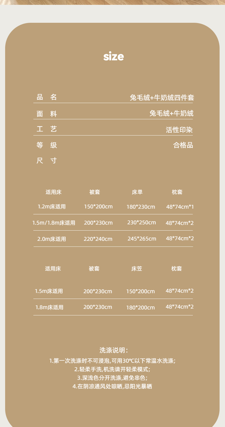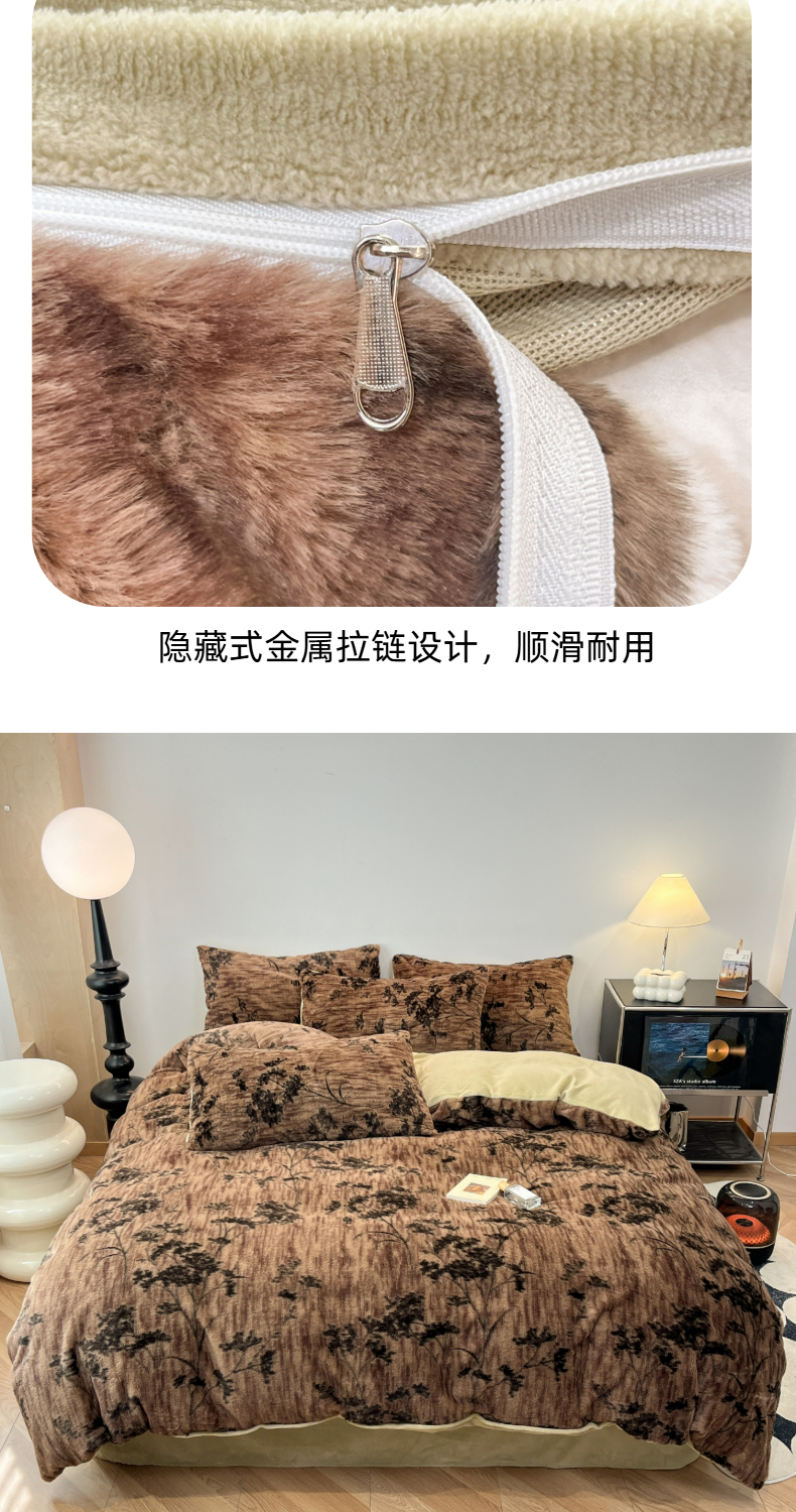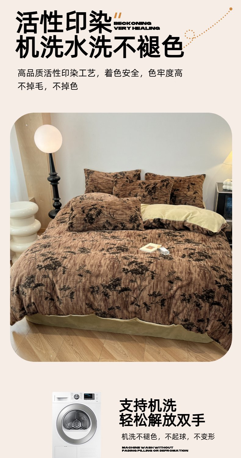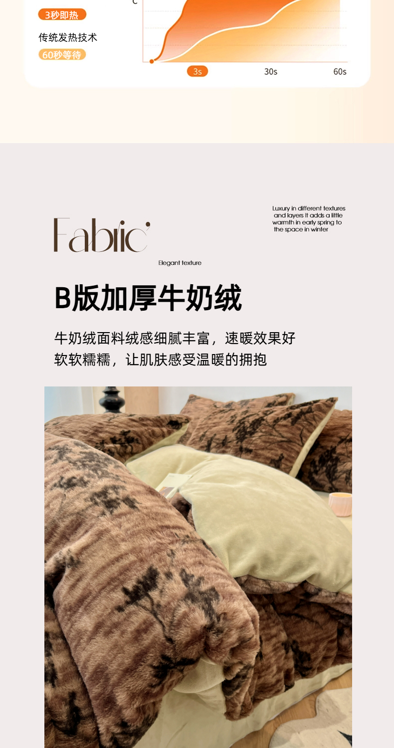 商品名称:金爱家 2025新款全消光牛奶绒A类赫本风纯色獭兔毛绒立体牛奶绒四件套 兔毛-树枝棕色