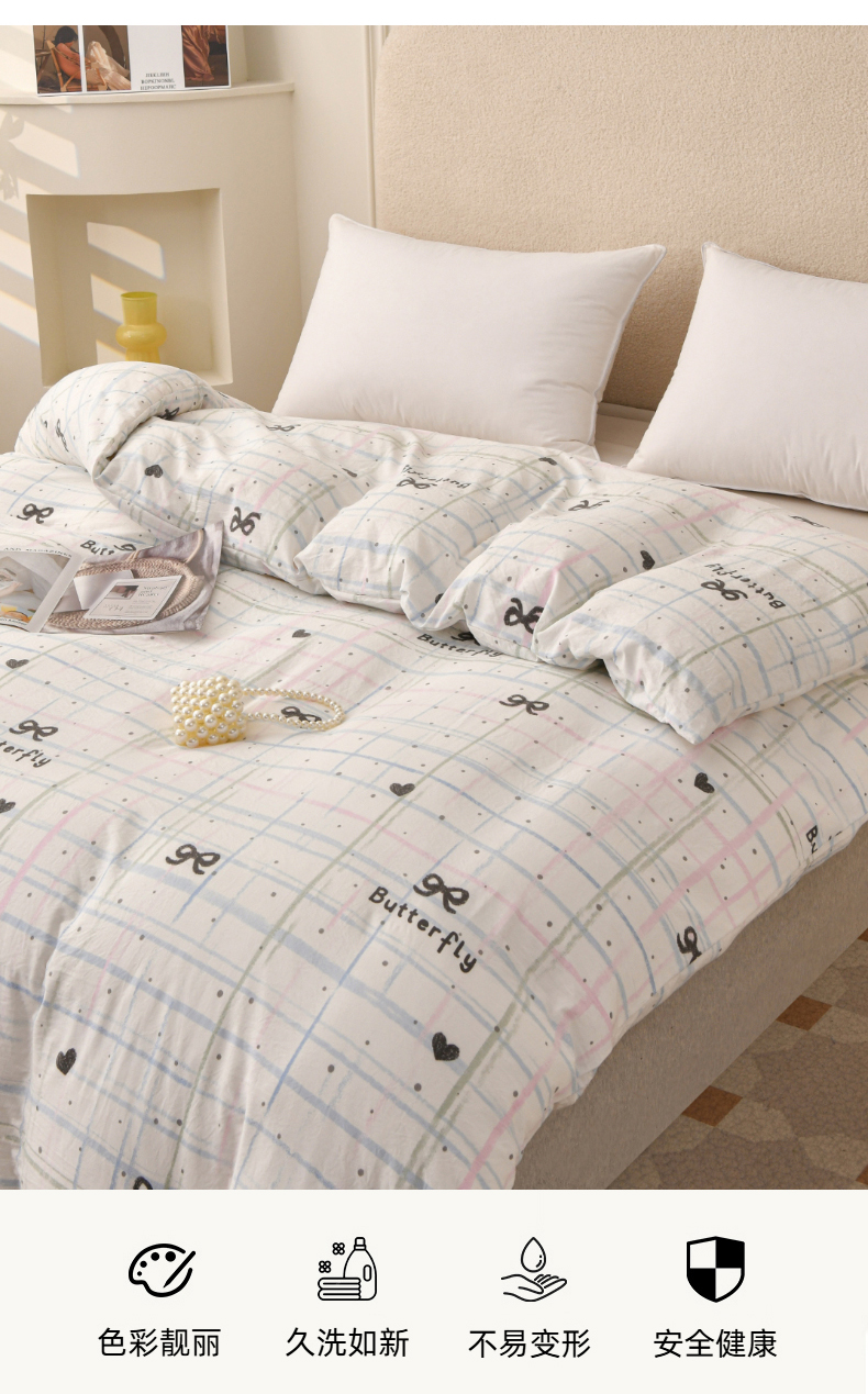 商品名称:小叮当家纺仓储工厂店 2025新款水洗棉印花被套单品被套单件被套 大蓝格