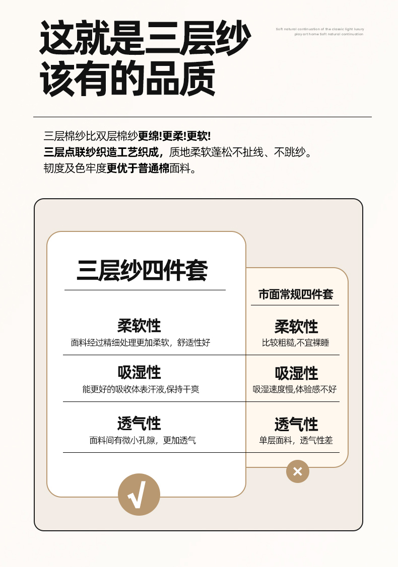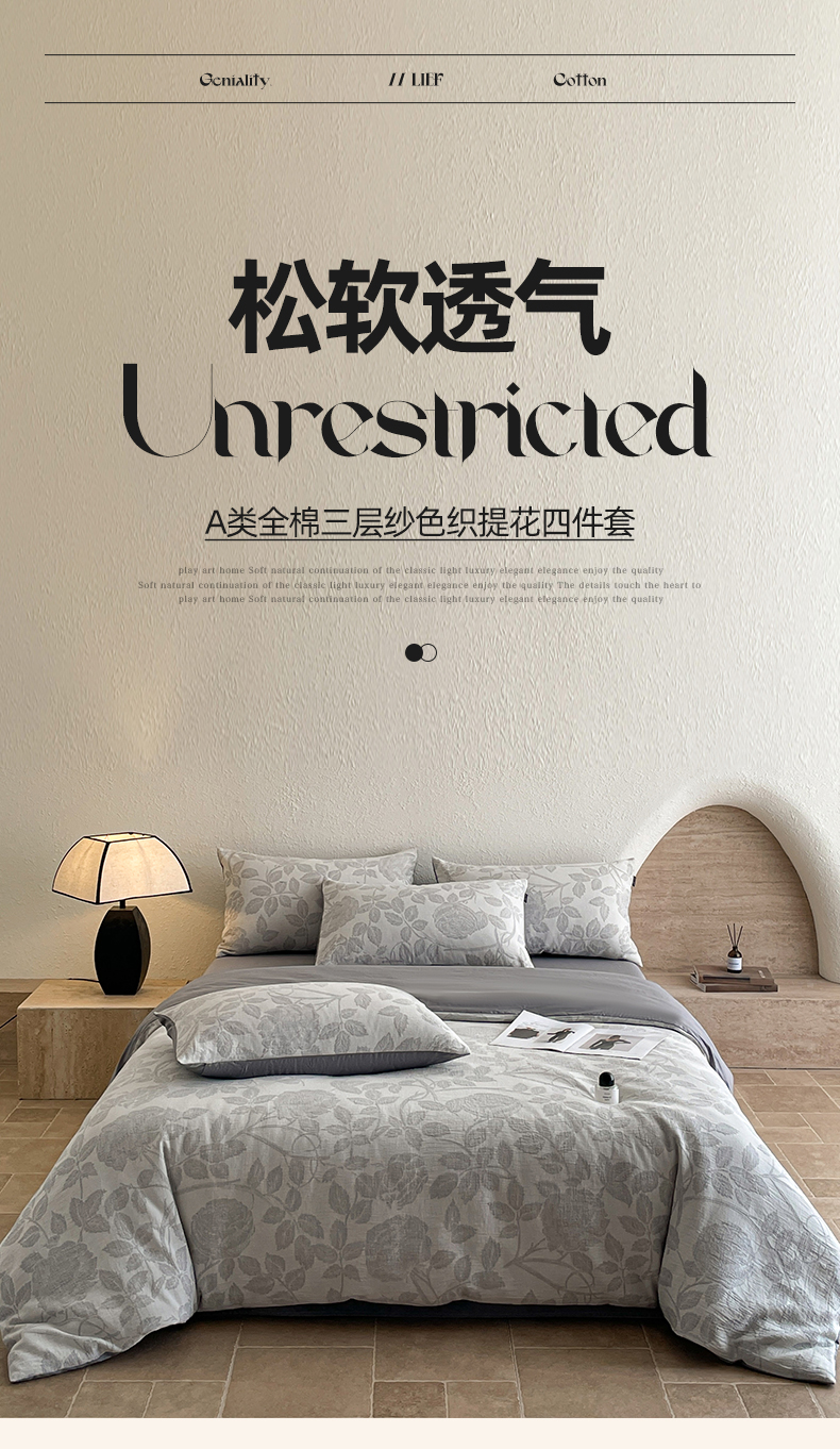 (总)小叮当家纺仓储工厂店 2025新款秋冬(买家秀 不断货)A类亲肤全棉纯棉色织水洗三层纱提花纯棉四件套