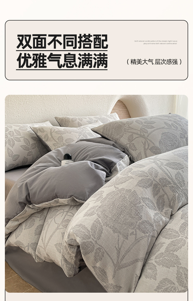 商品名称:(总)小叮当家纺仓储工厂店 2025新款秋冬(买家秀 不断货)A类亲肤全棉纯棉色织水洗三层纱提花纯棉四件套