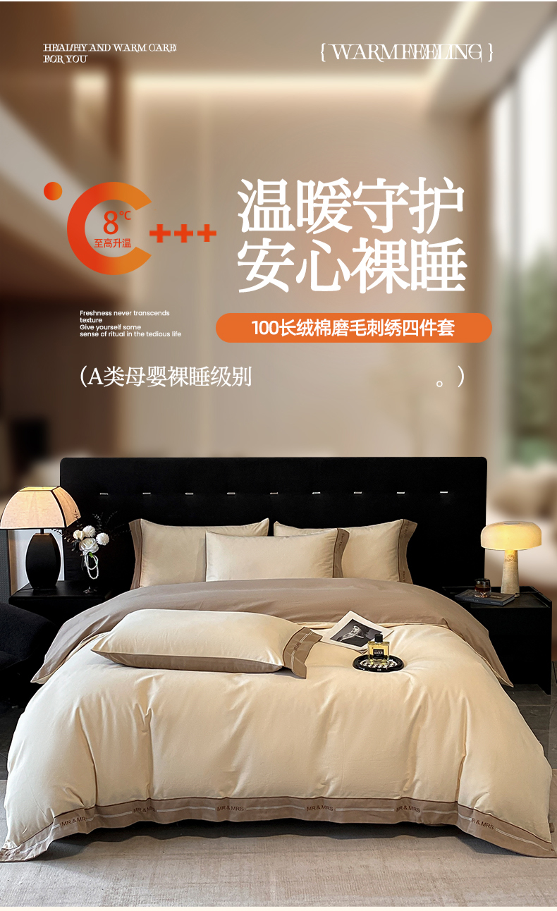 商品名称:小叮当家纺仓储工厂店 2025新款 (买家秀 不断货)更细腻A类全棉纯棉100支长绒棉磨毛四件套不毛 香草摩卡