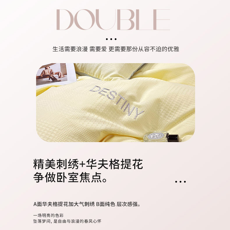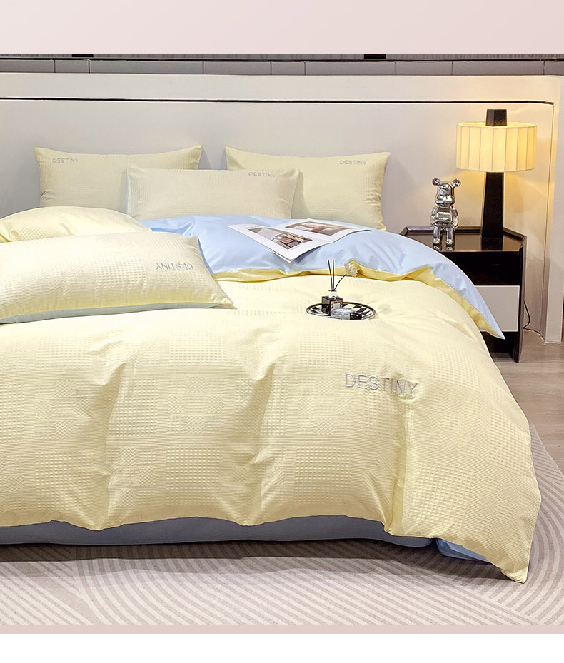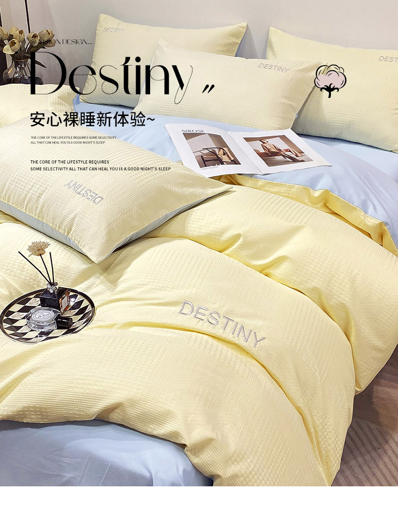 当前位置: 91家纺网 > 商品网购 > 床品套件 > 四件套 > 全棉普通四件套 > 小叮当家纺仓储工厂店 2025新款秋冬(热买家秀不断货)A类母婴级亲肤全棉纯棉华夫格提花纯棉刺绣四件套 华夫格-奶黄