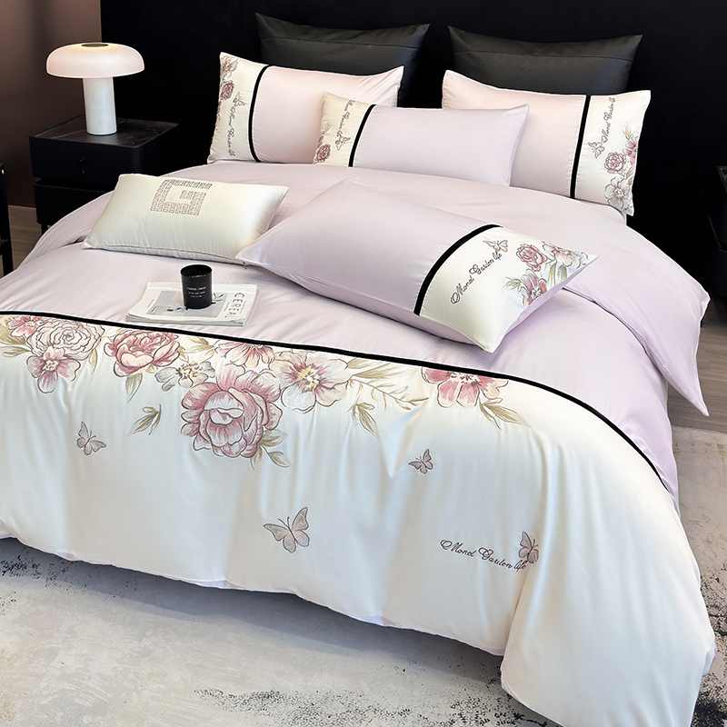 优悦生活馆 2025新款亲肤新疆长绒棉四件套-花团锦簇风格二 花团锦簇-流沙紫