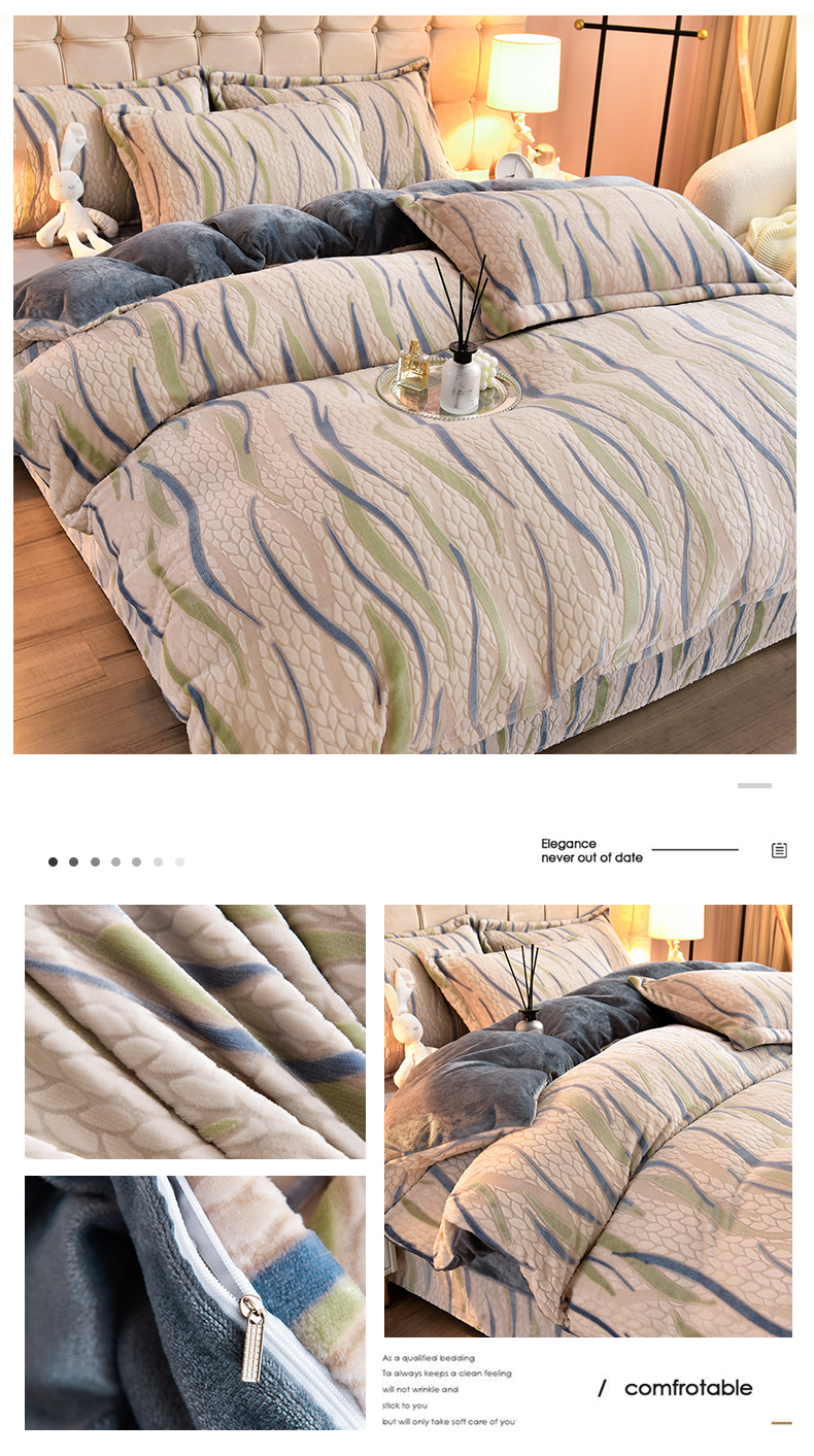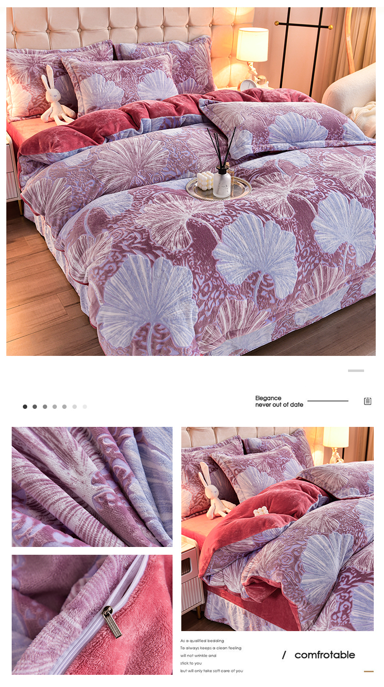 畅畅家纺 2025新款亲肤舒适冬季保暖8斤重牛奶绒6D雕花绒床单四件套 豆蔻年华