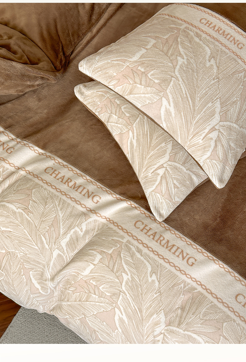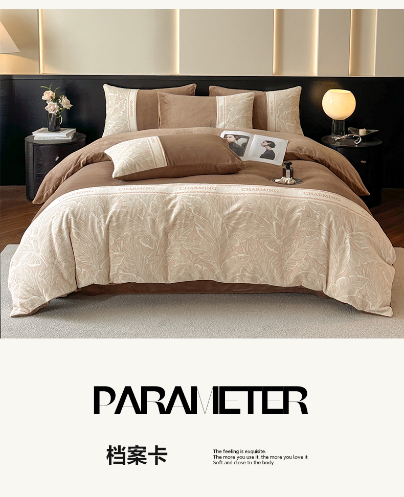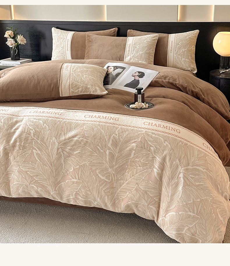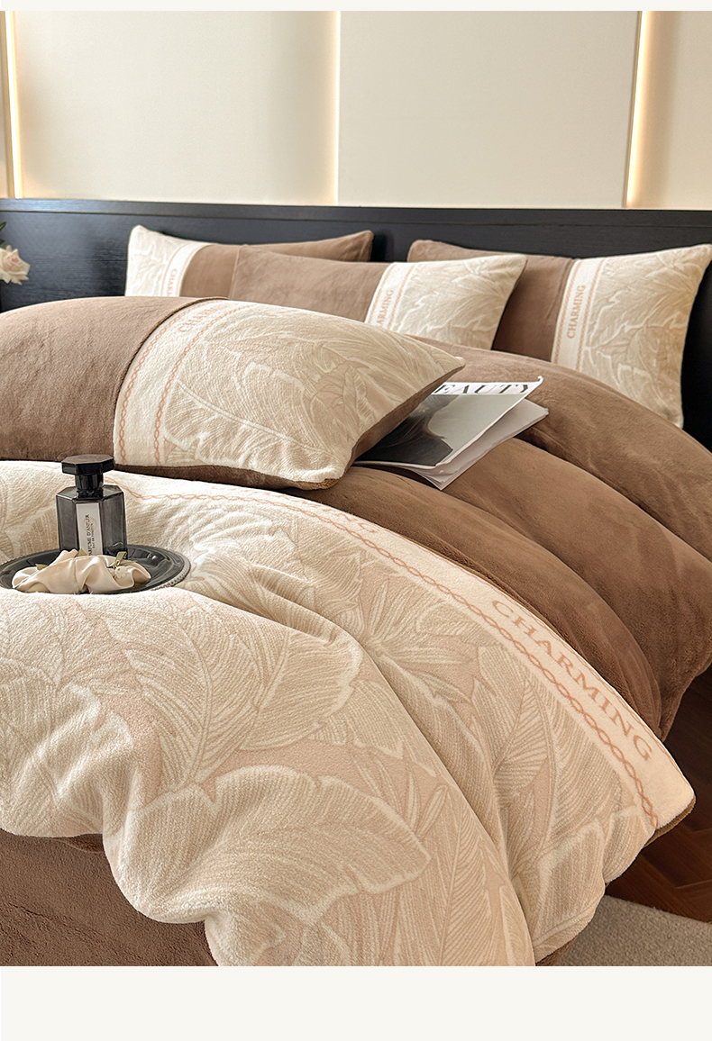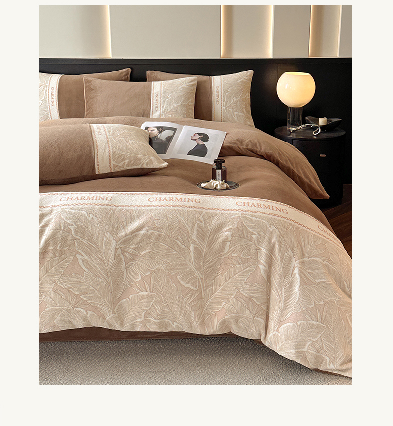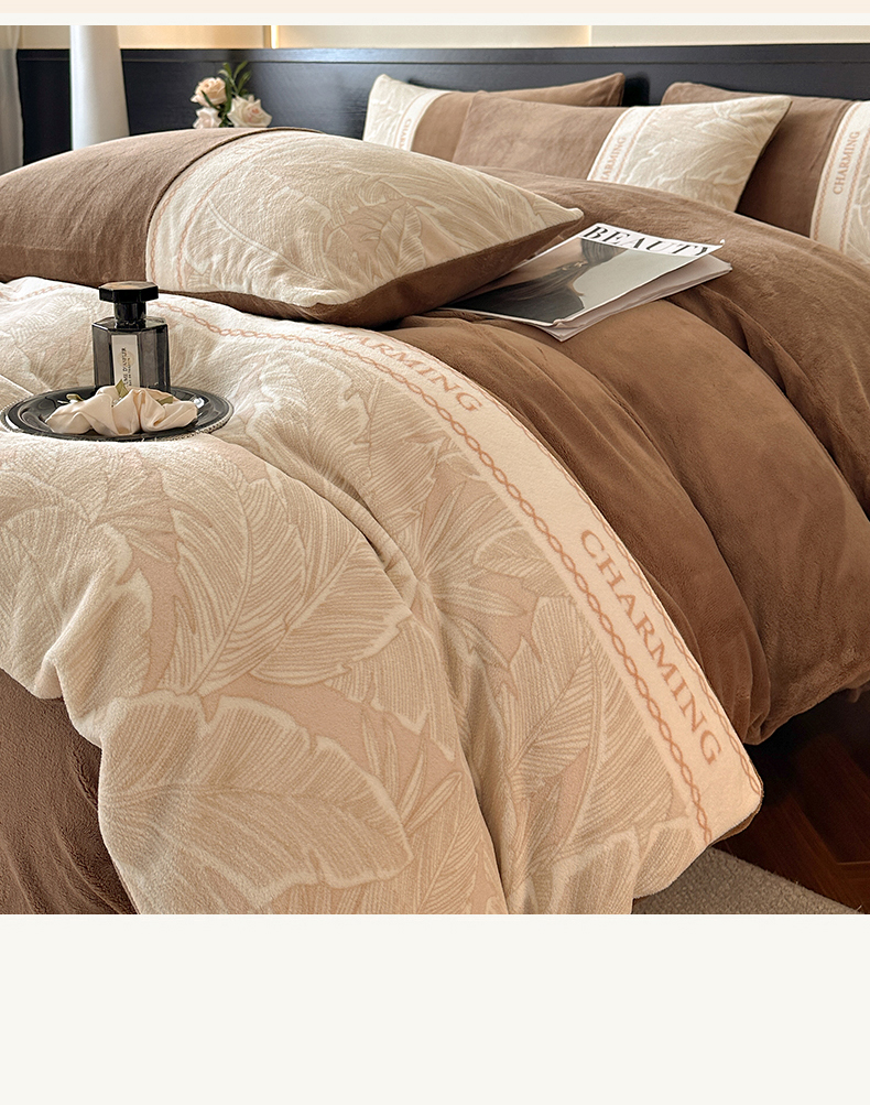 梦幻之城 2025新款牛奶绒刺绣款四件套-苏缦 摩卡棕
