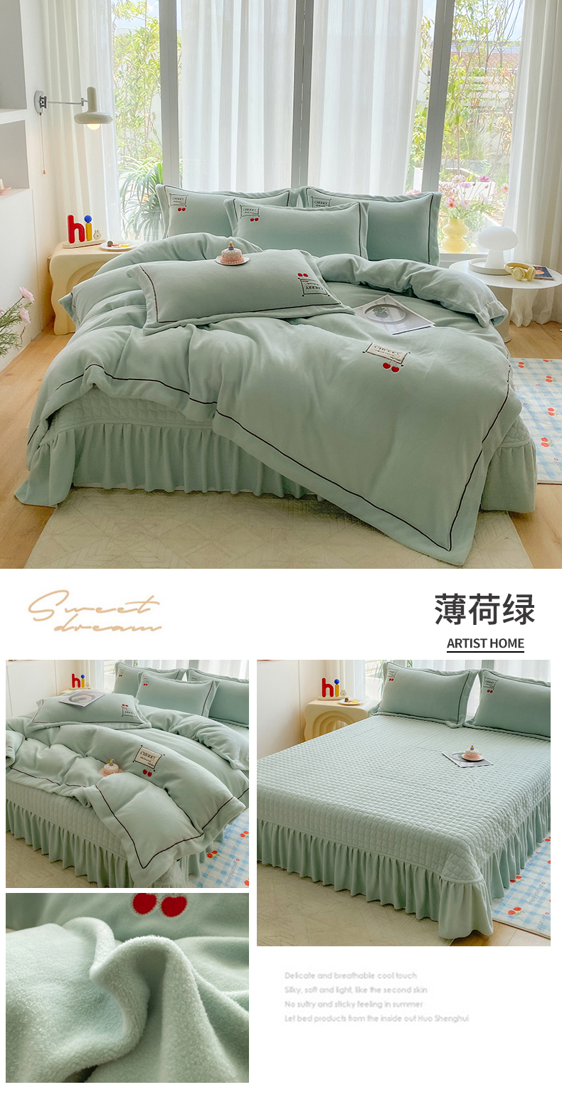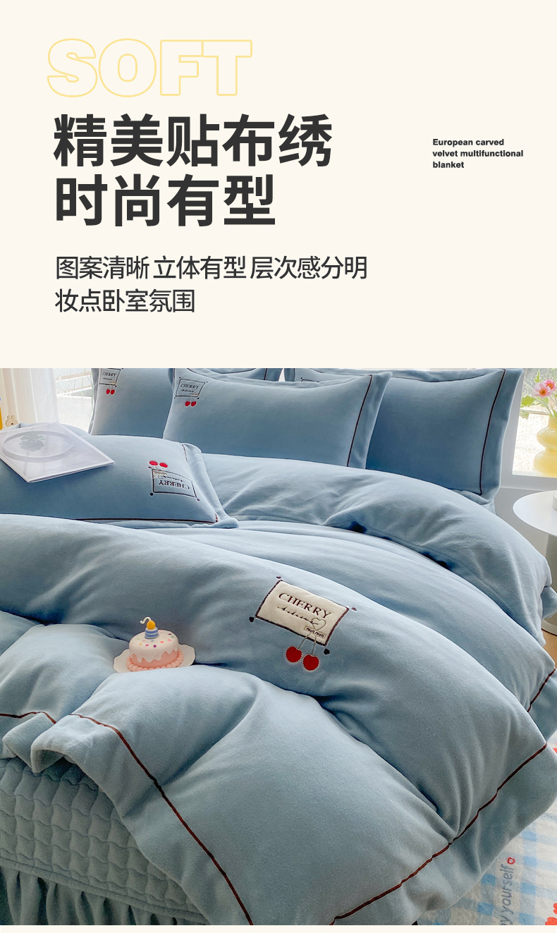 (总)美伦美焕 2025新款獭獭绒贴布绣床盖款四件套,薄荷绿,豆沙,高级灰,雾霾蓝,香芋紫
