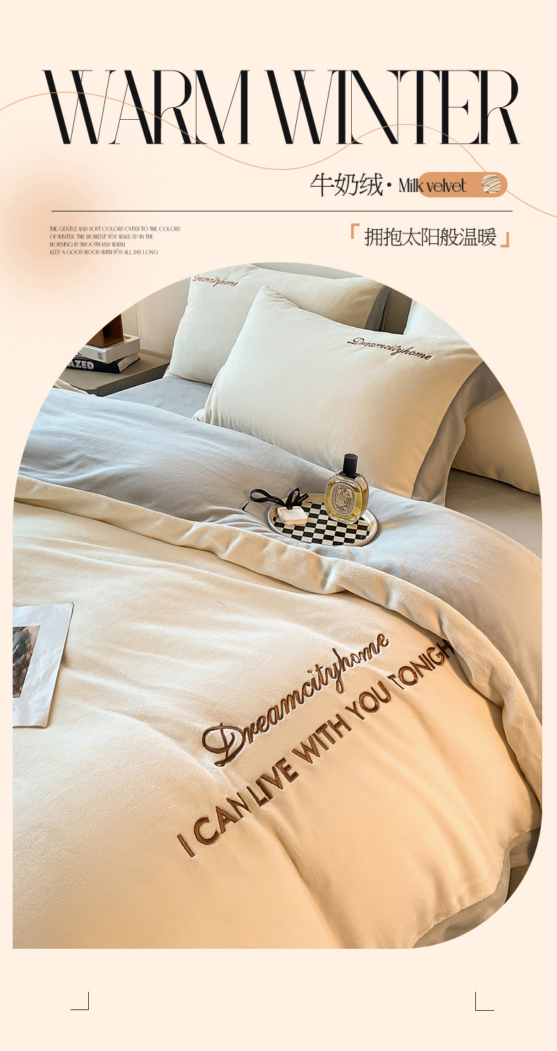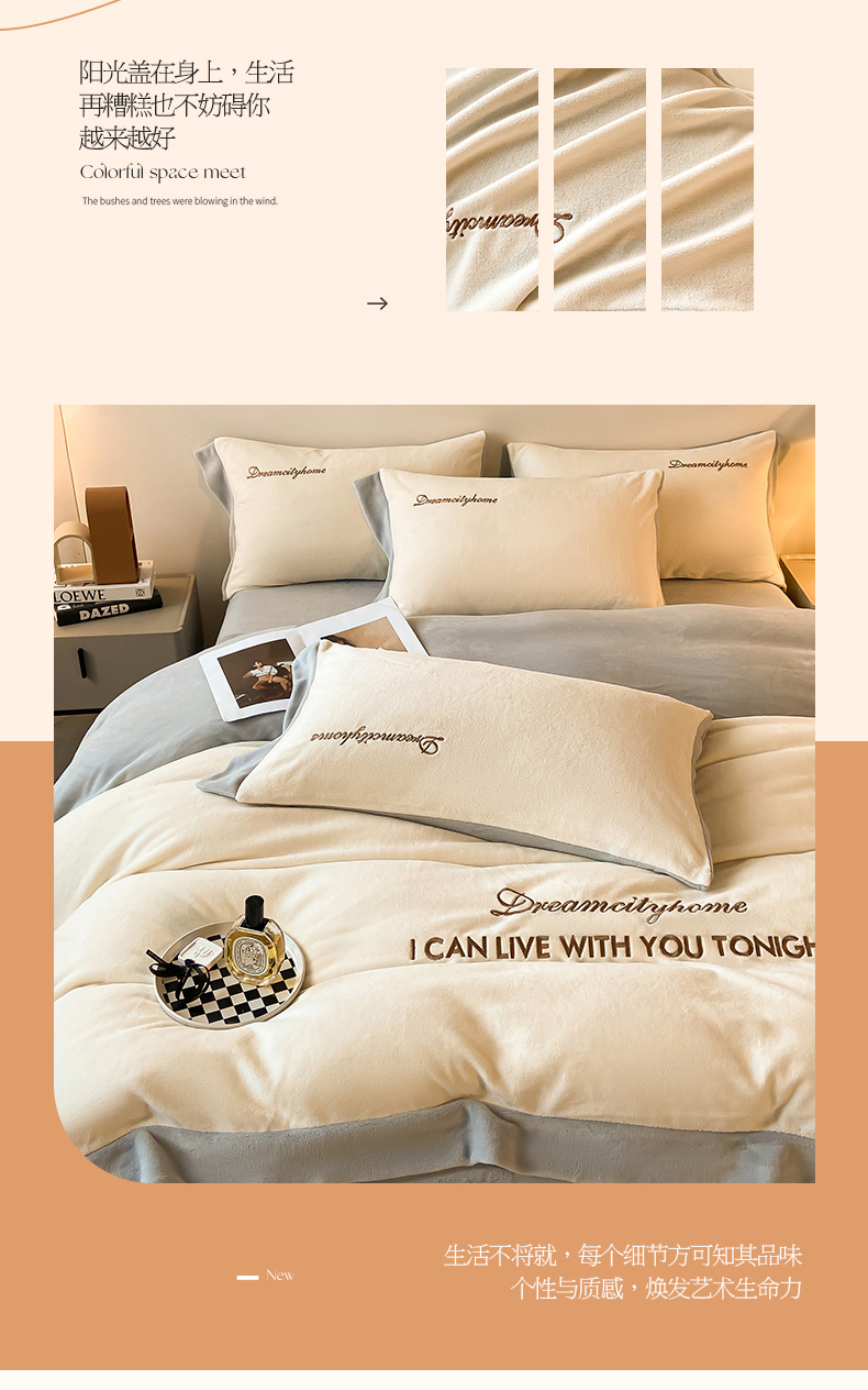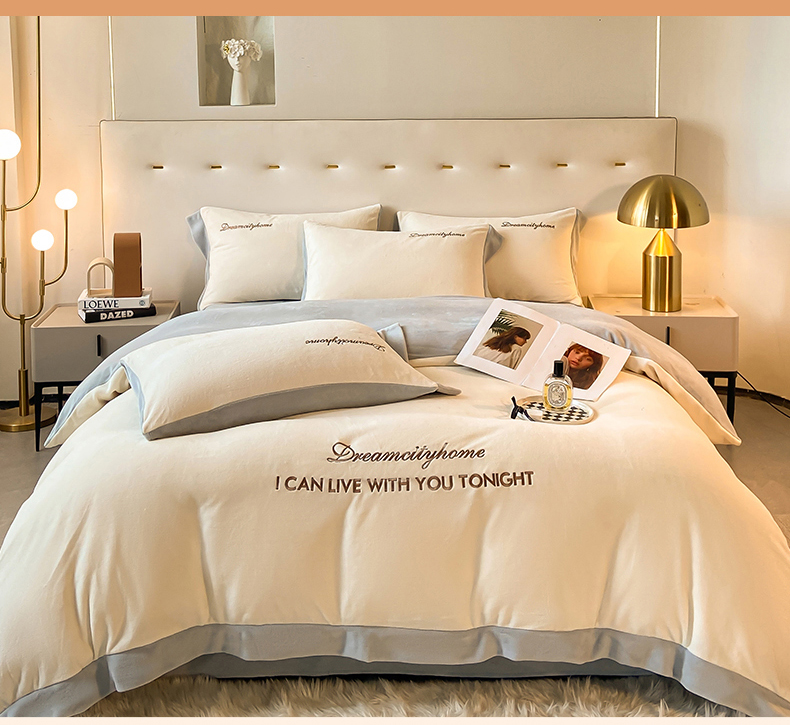 当前位置: 91家纺网 > 商品网购 > 床品套件 > 四件套 > 牛奶绒四件套 > 梦幻之城 2025新款牛奶绒刺绣四件套-安克斯绒C款 安克斯绒-奶芋色+星辰灰
