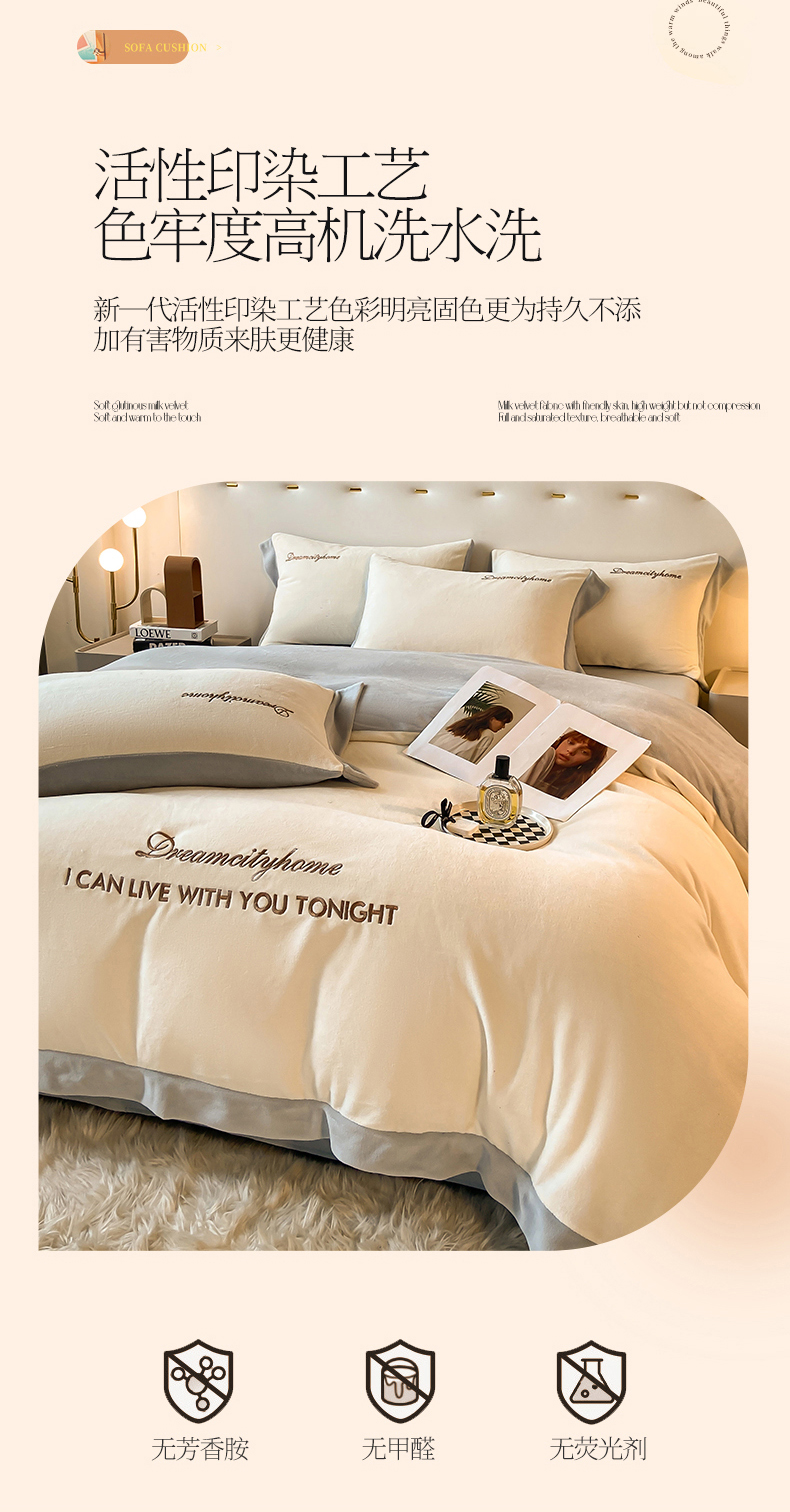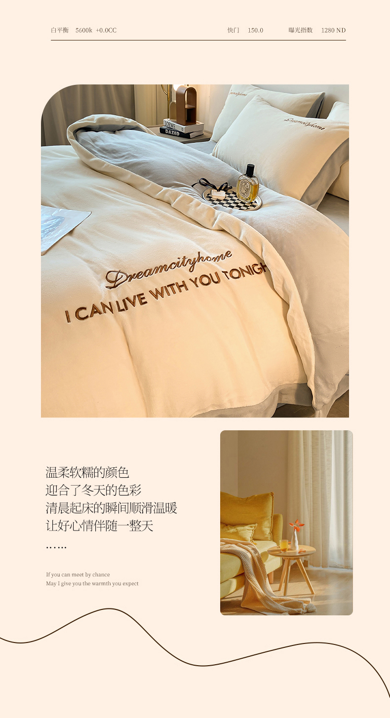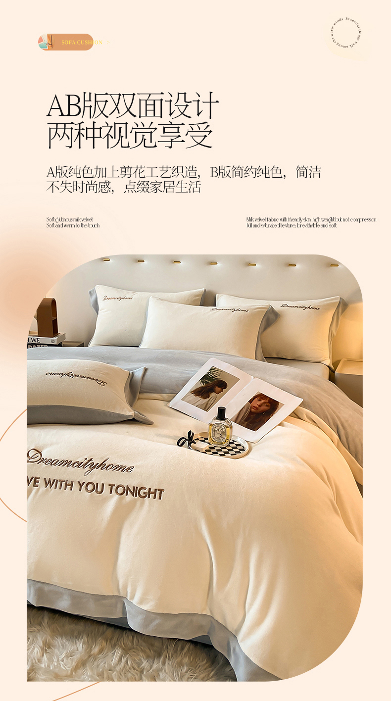 当前位置: 91家纺网 > 商品网购 > 床品套件 > 四件套 > 牛奶绒四件套 > 梦幻之城 2025新款牛奶绒刺绣四件套-安克斯绒C款 安克斯绒-奶芋色+星辰灰