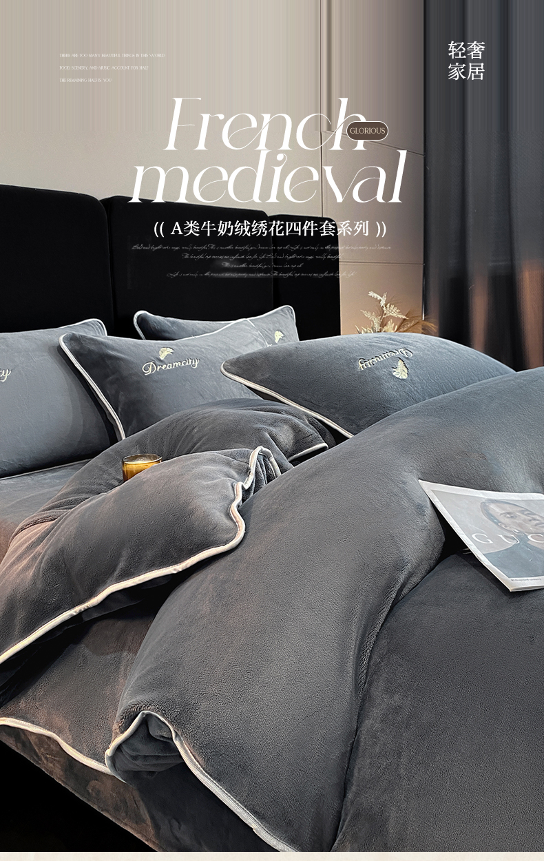 当前位置: 91家纺网 > 商品网购 > 床品套件 > 四件套 > 牛奶绒四件套 > 梦幻之城 2025新款牛奶绒刺绣款四件套-寐羽A款 寐羽-绅士灰