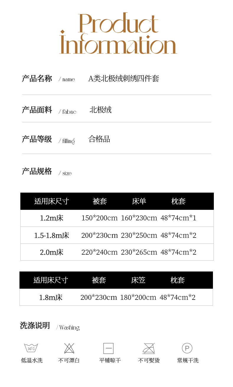 【床笠款】1.5四件套-被套200x230 | ¥105.00 |