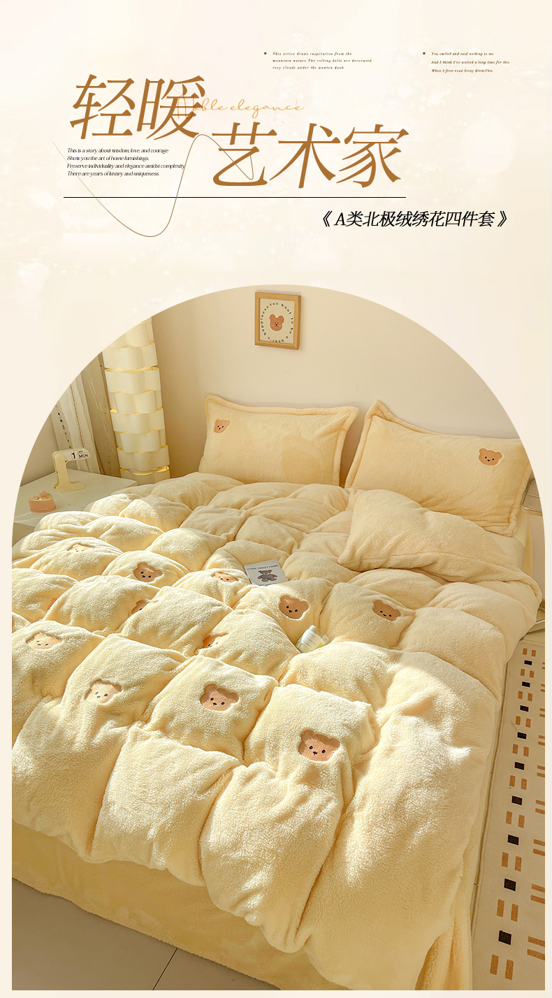 当前位置: 91家纺网 > 商品网购 > 床品套件 > 四件套 > 牛奶绒四件套 > 梦幻之城 2025新款北极绒绣花系列四件套-萌宠 萌宠-奶油黄