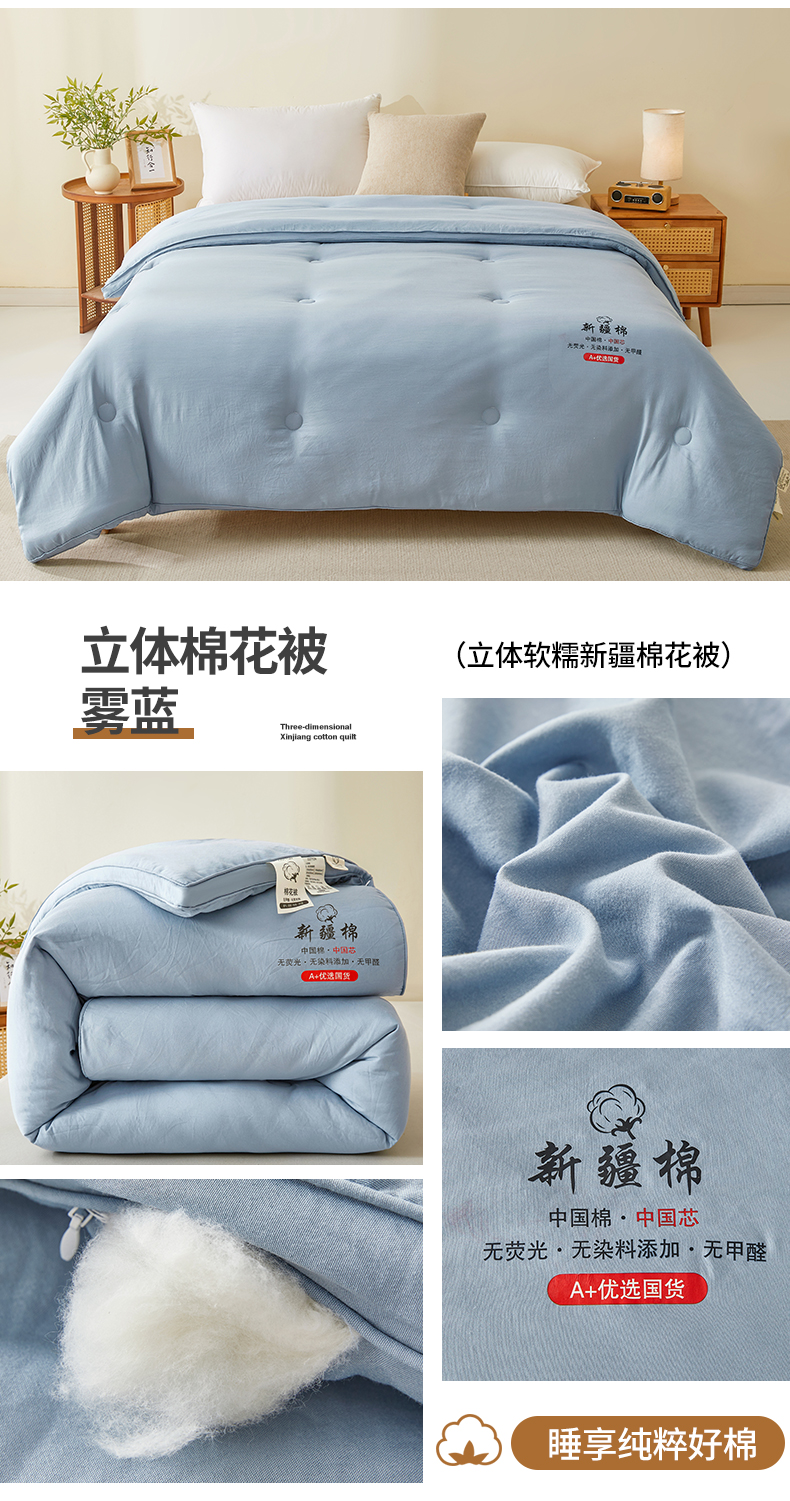 • 91家纺网 家纺一手货源 找家纺 逸居家纺 2025新款A类立体新疆棉花被子被芯 立体棉花被 雾蓝