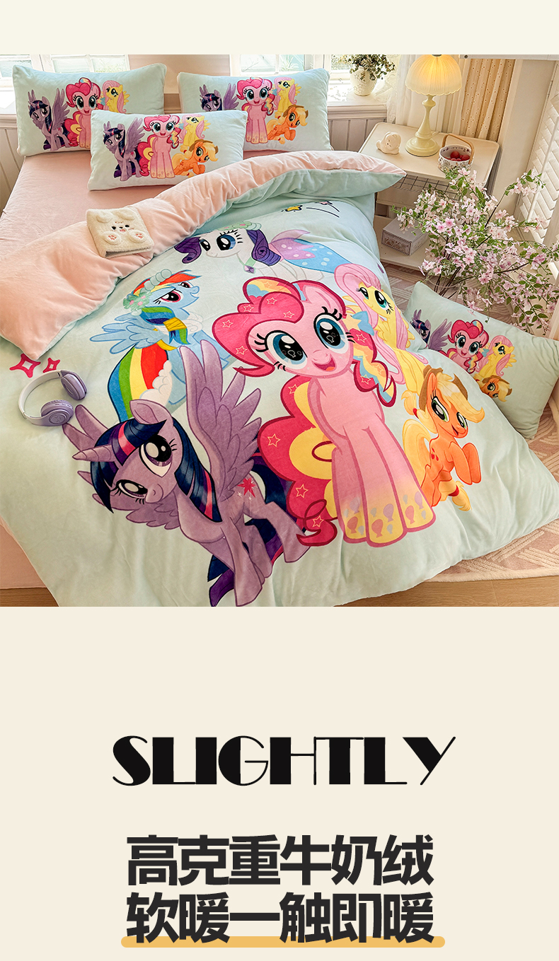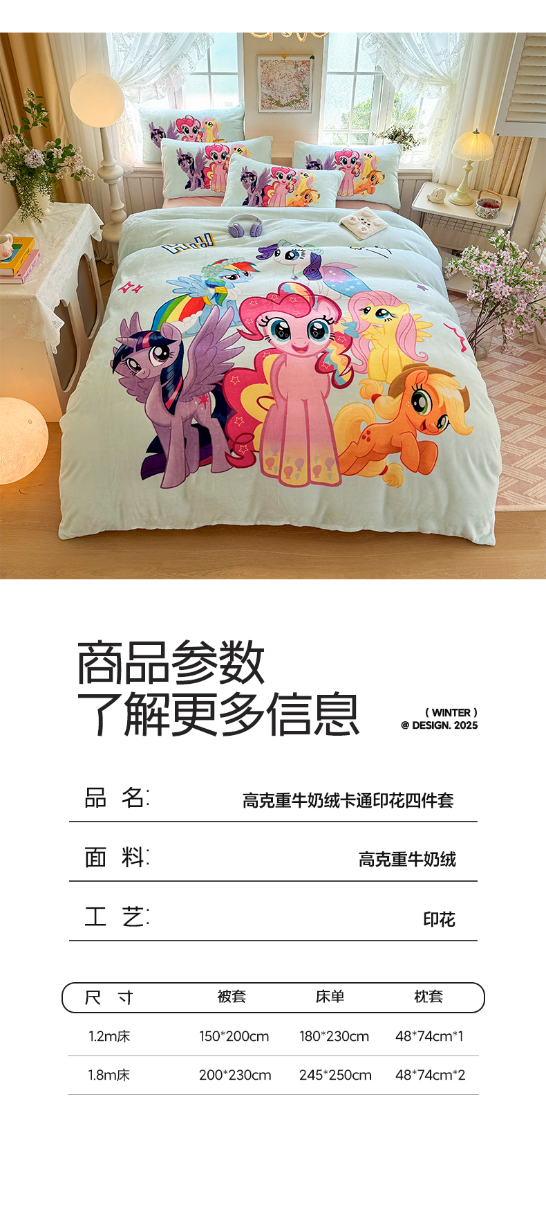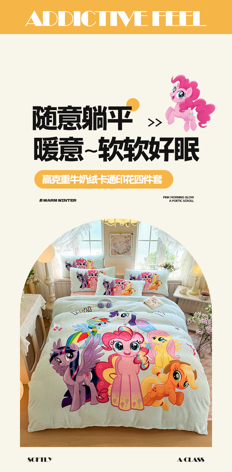 当前位置: 91家纺网 > 商品网购 > 床品套件 > 四件套 > 牛奶绒四件套 > 馨语家居 2025新款直播热款高克重保暖卡通牛奶绒印花四件套 小马碧琪