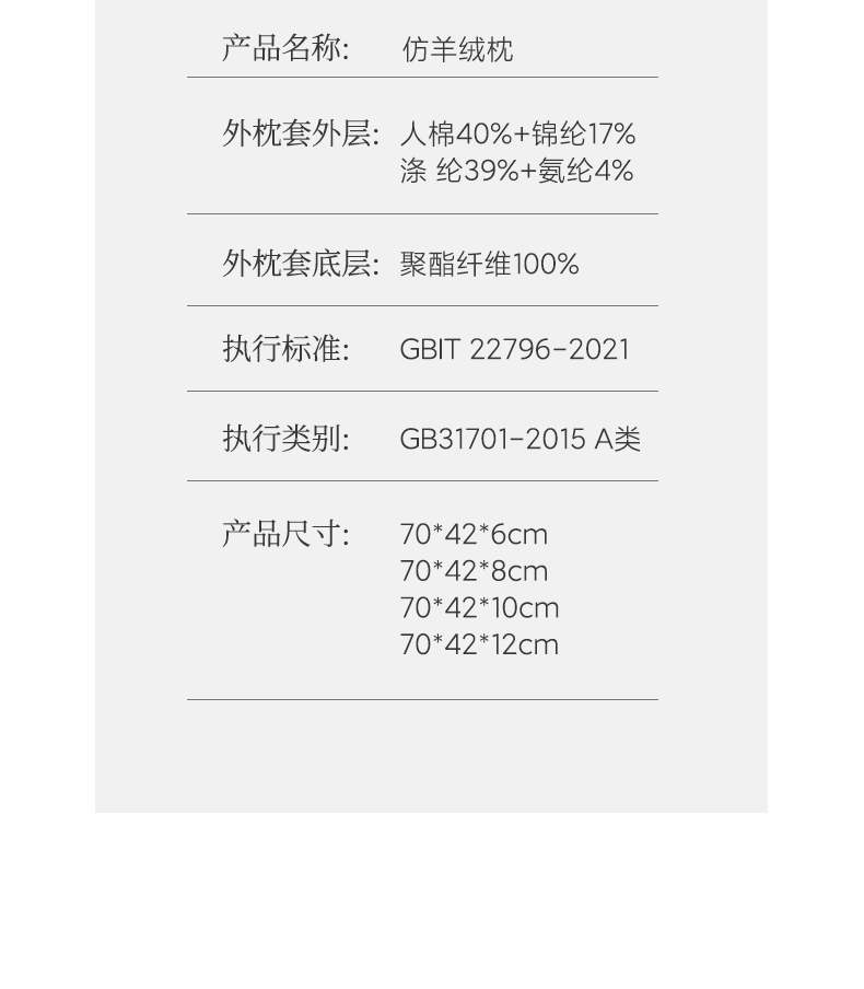 42x70/高度6cm(毛巾绣仿羊绒面包记忆枕套)