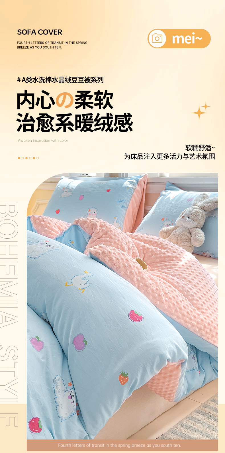 • 91家纺网 家纺一手货源 找家纺 (总)盛秋家纺 2025新款A类水洗棉水晶绒豆豆被被子被芯,情侣猫+蝴蝶粉,甜心猫+蝴蝶粉,花满天+蝴蝶粉,欢乐狗+水蓝,开心乐园+月光蓝,开心派对+水蓝,铃兰+橄榄绿,萌宠乐园+水蓝
