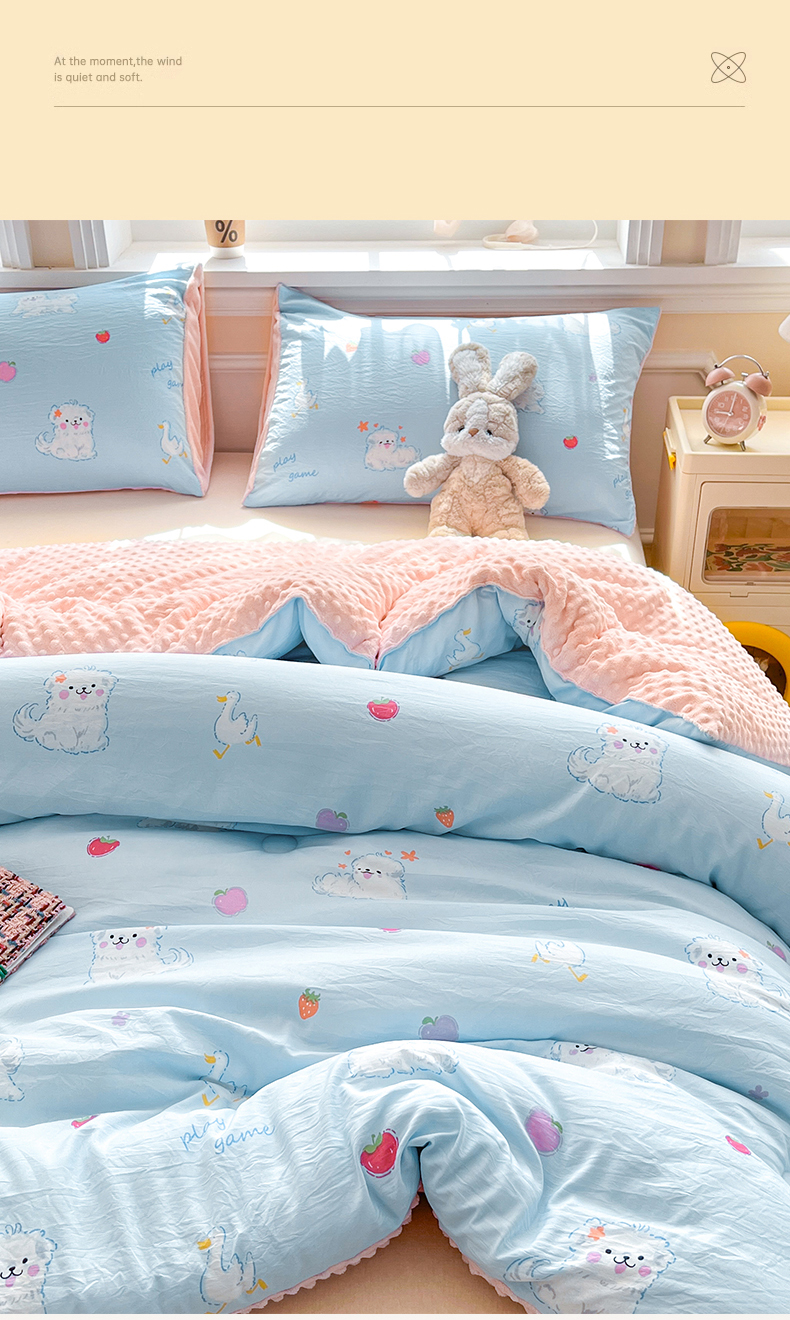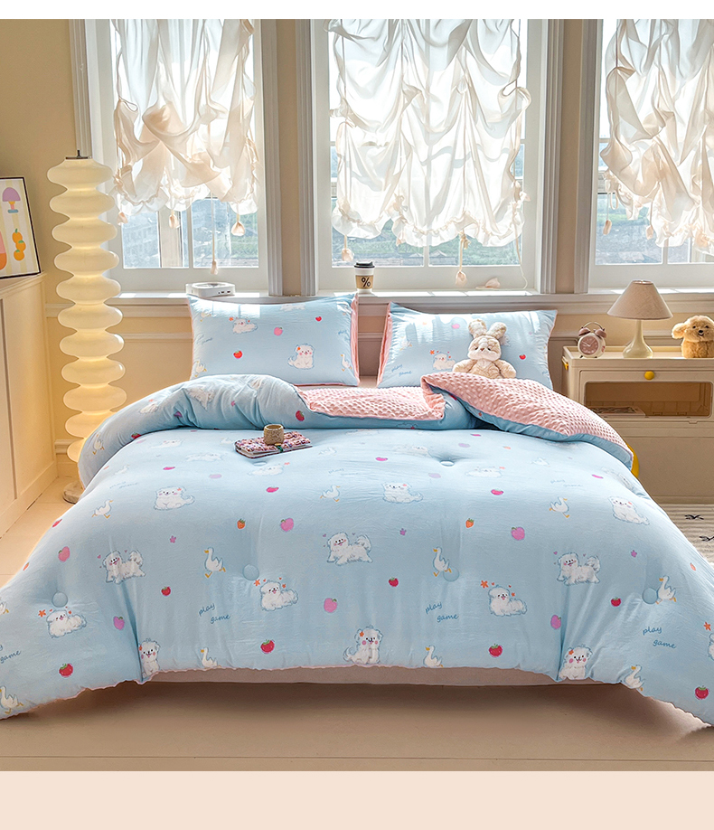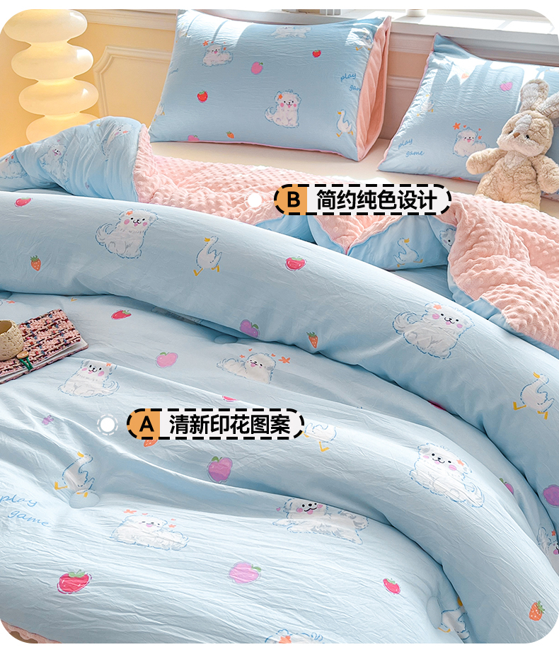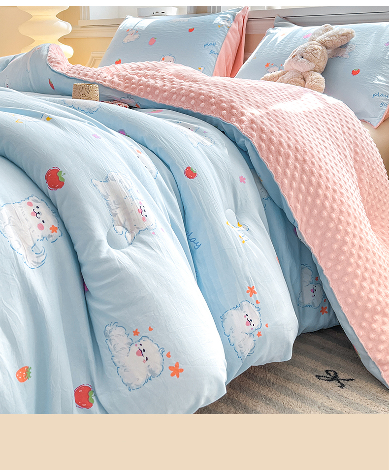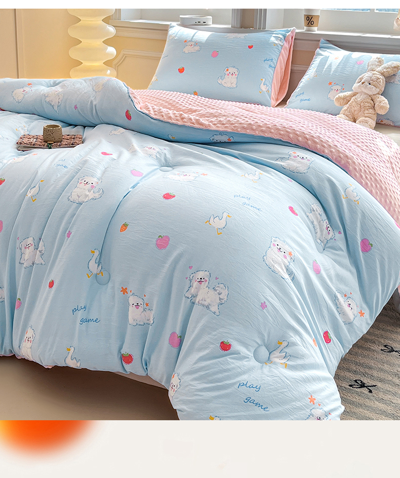 (总)盛秋家纺 2025新款A类水洗棉水晶绒豆豆被被子被芯,情侣猫+蝴蝶粉,甜心猫+蝴蝶粉,花满天+蝴蝶粉,欢乐狗+水蓝,开心乐园+月光蓝,开心派对+水蓝,铃兰+橄榄绿,萌宠乐园+水蓝