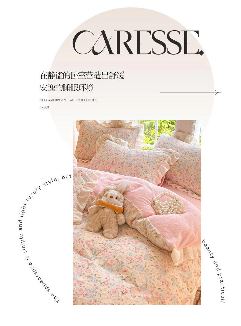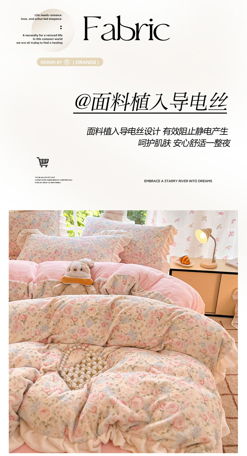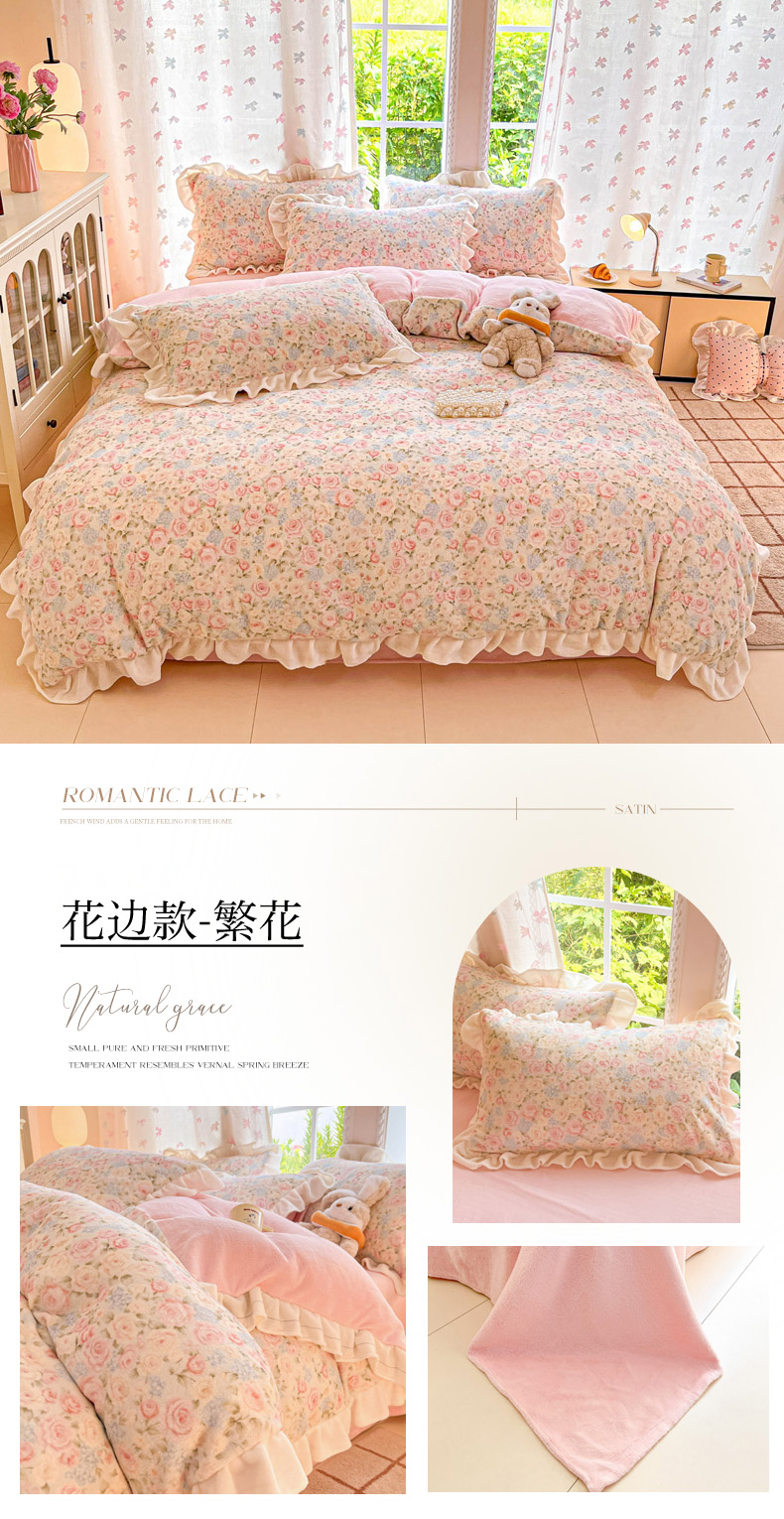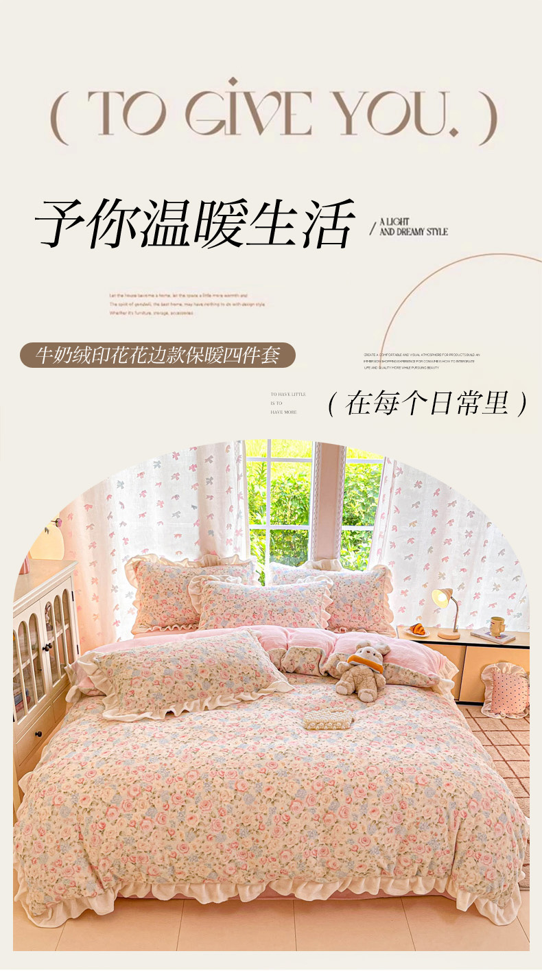 慕澄家居 2025新款花边款牛奶绒印花四件套 花边款-繁花