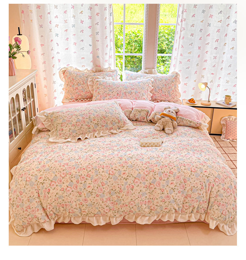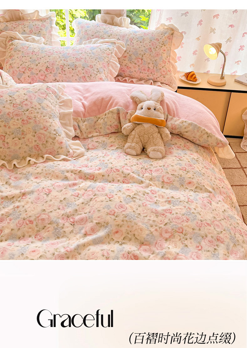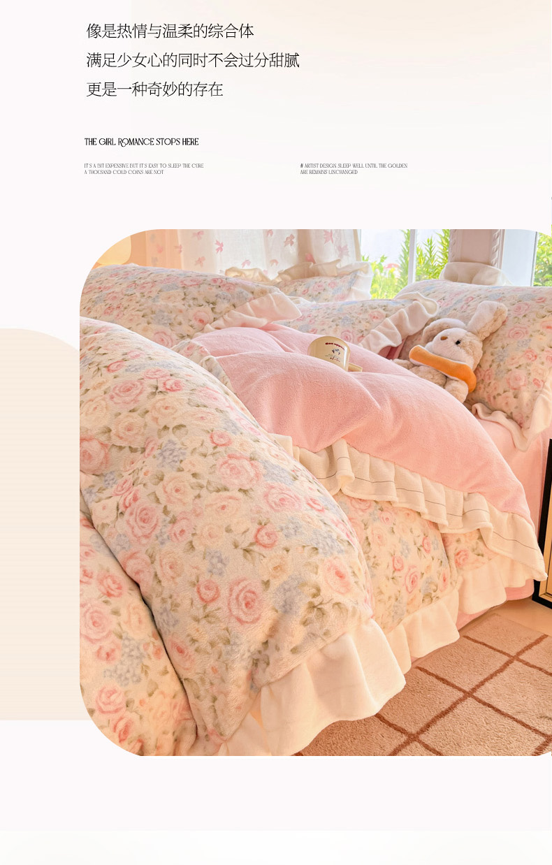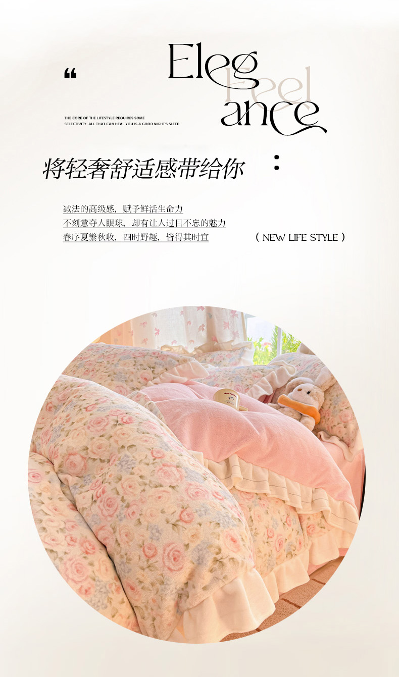 慕澄家居 2025新款花边款牛奶绒印花四件套 花边款-繁花