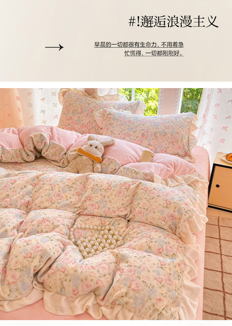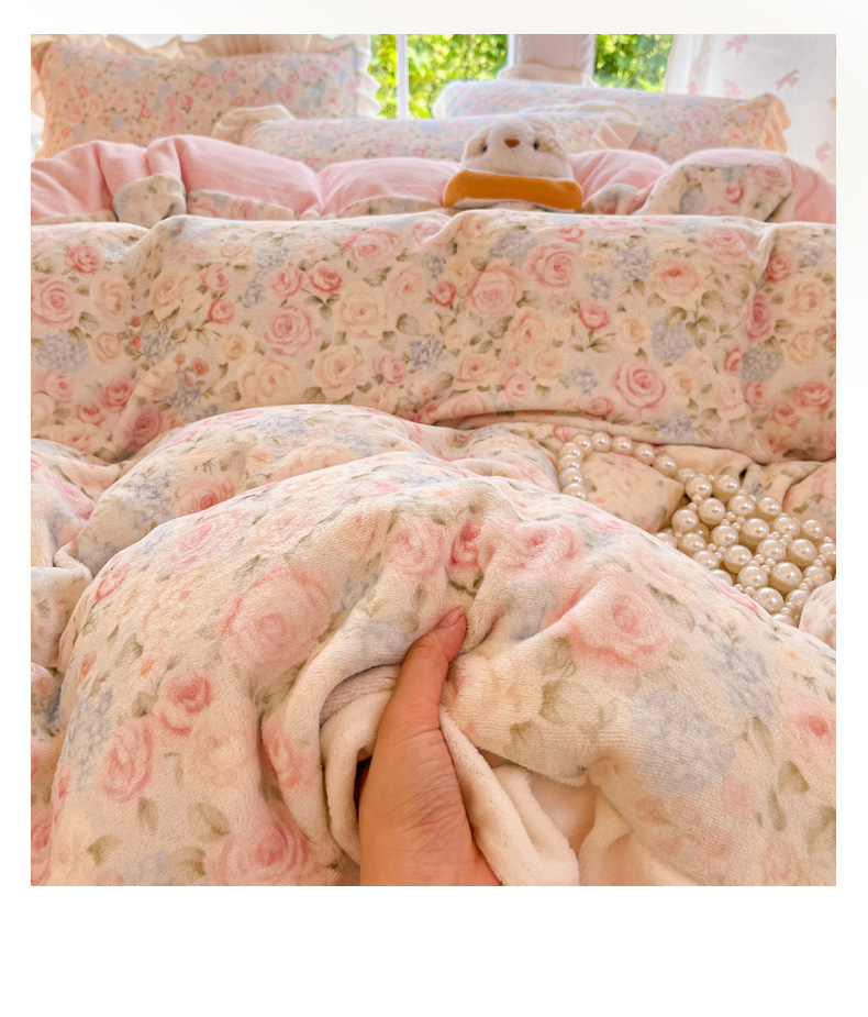 商品名称:慕澄家居 2025新款花边款牛奶绒印花四件套 花边款-繁花