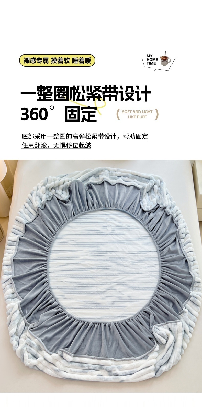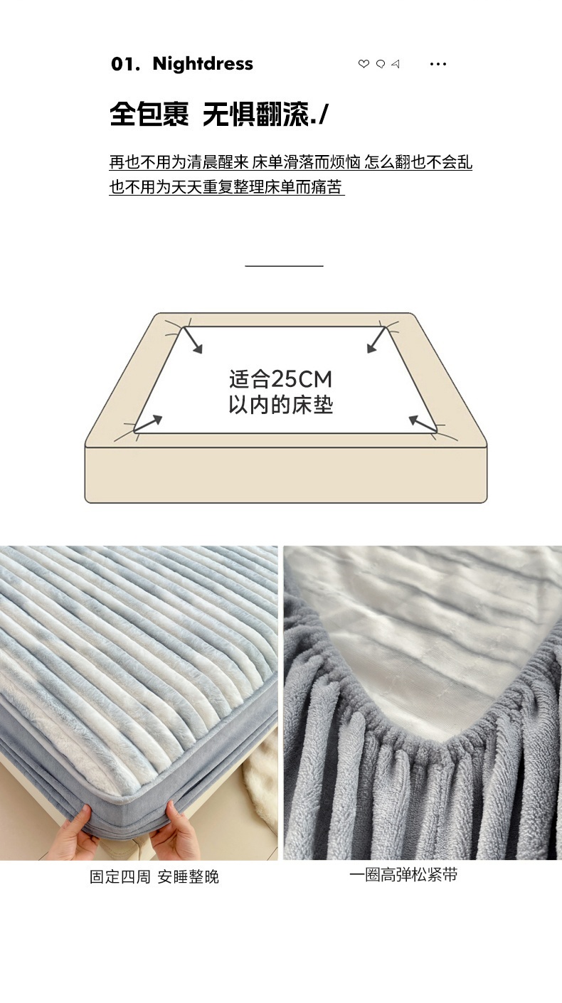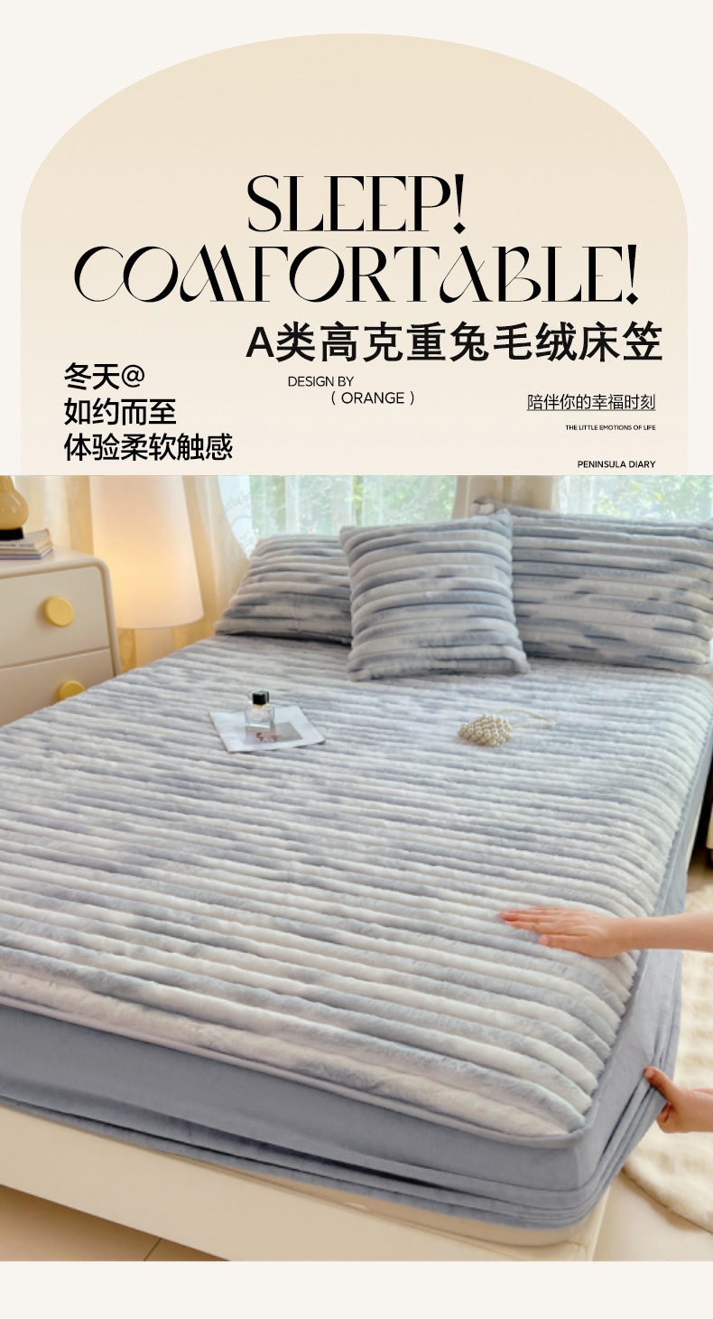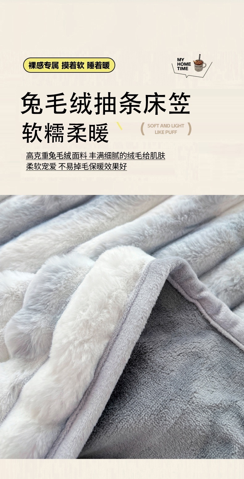 • 91家纺网 家纺一手货源 找家纺 梦舒羽 2025新款兔毛绒床笠床垫法兰绒保护套牛奶绒席梦思法莱绒床垫套-抽条 兔毛绒抽条-梦幻浅灰
