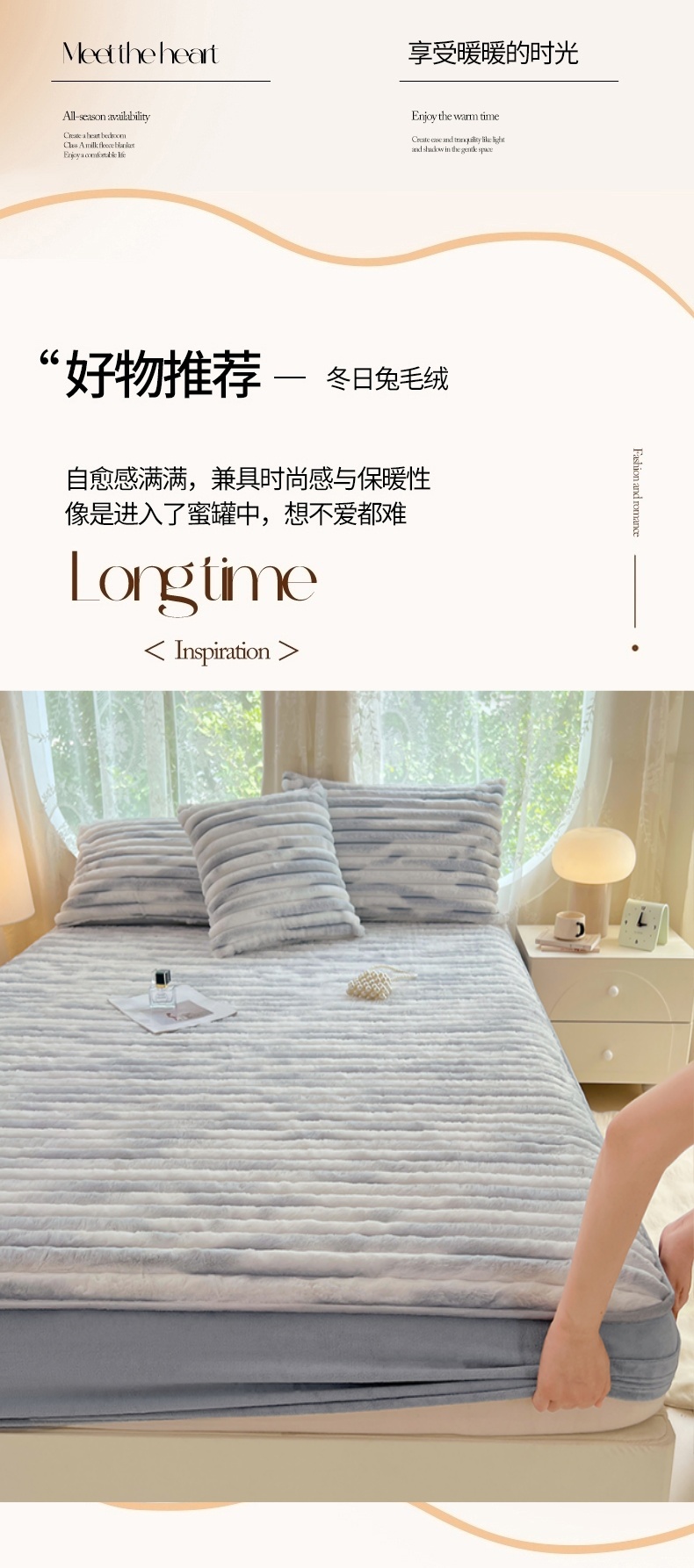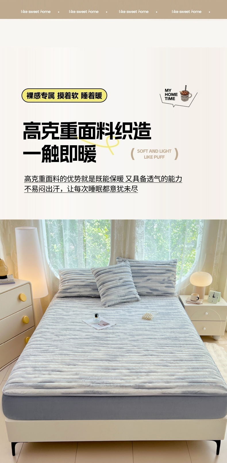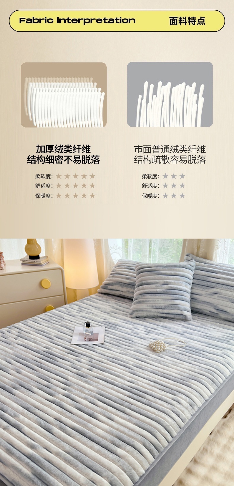 • 91家纺网 家纺一手货源 找家纺 梦舒羽 2025新款兔毛绒床笠床垫法兰绒保护套牛奶绒席梦思法莱绒床垫套-抽条 兔毛绒抽条-梦幻浅灰