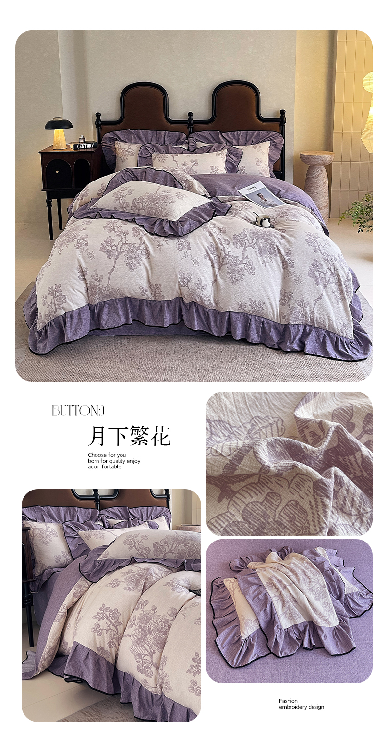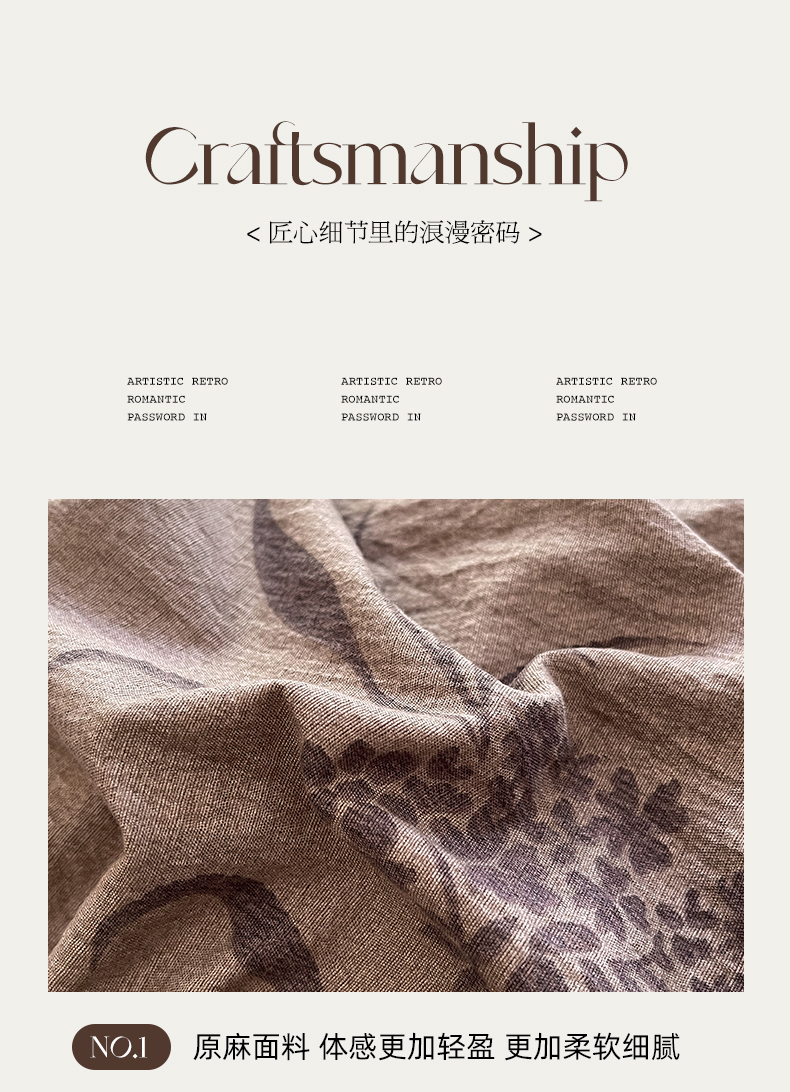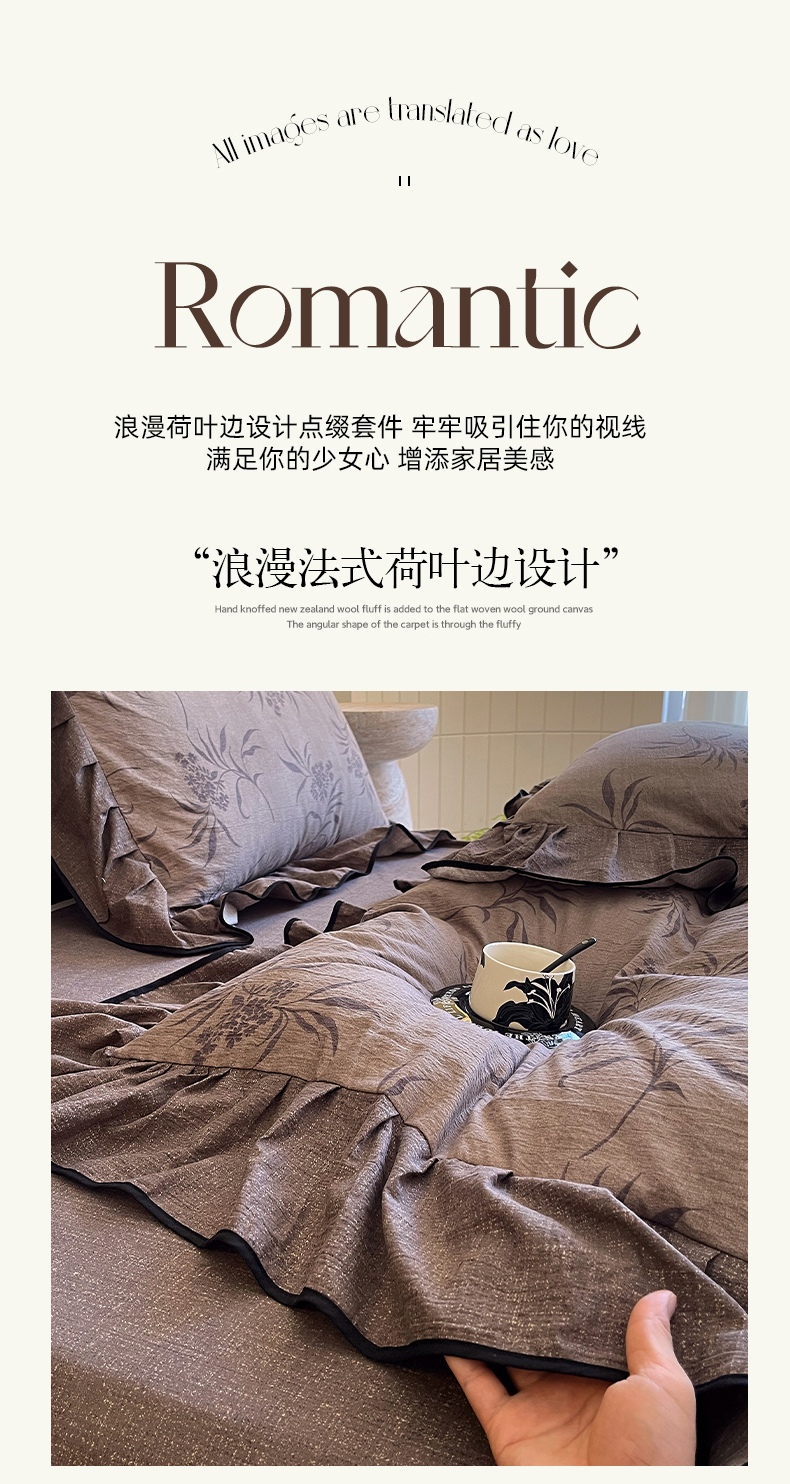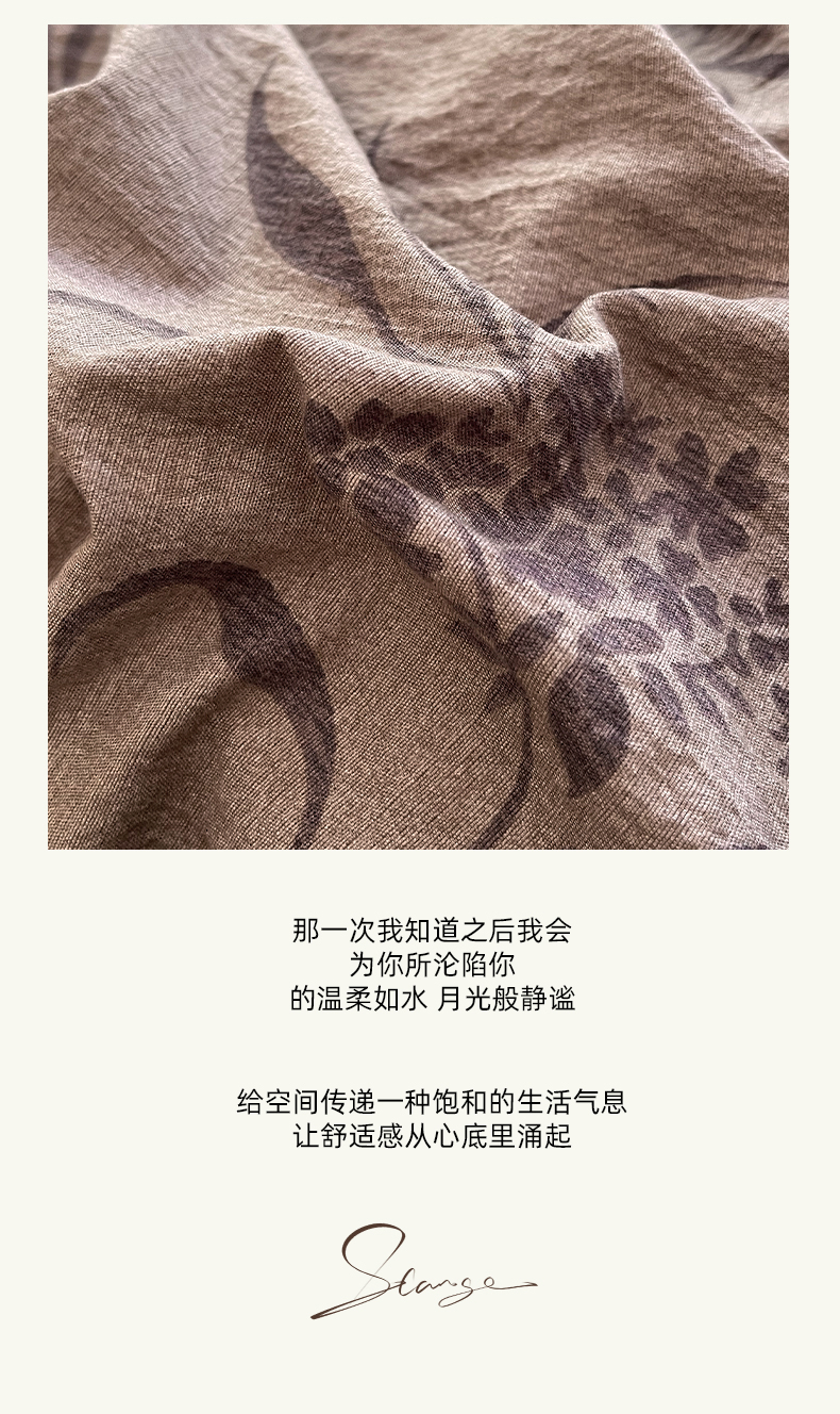 商品名称:丝芙妮家居(原乐视家纺) 2025新款A类原麻复合印花花边四件套 风野涧