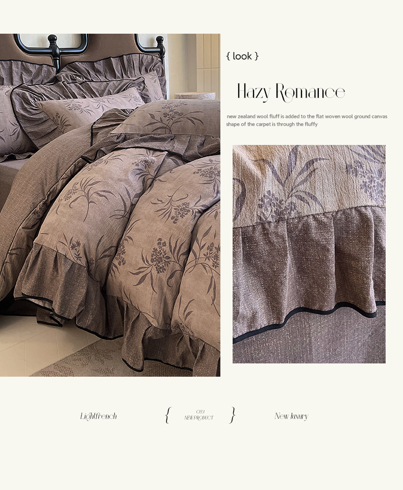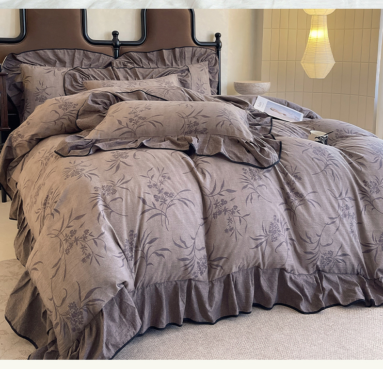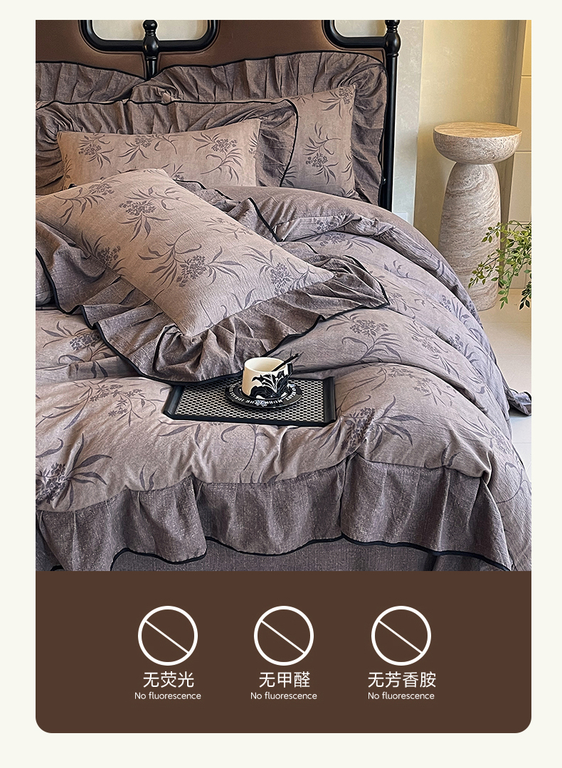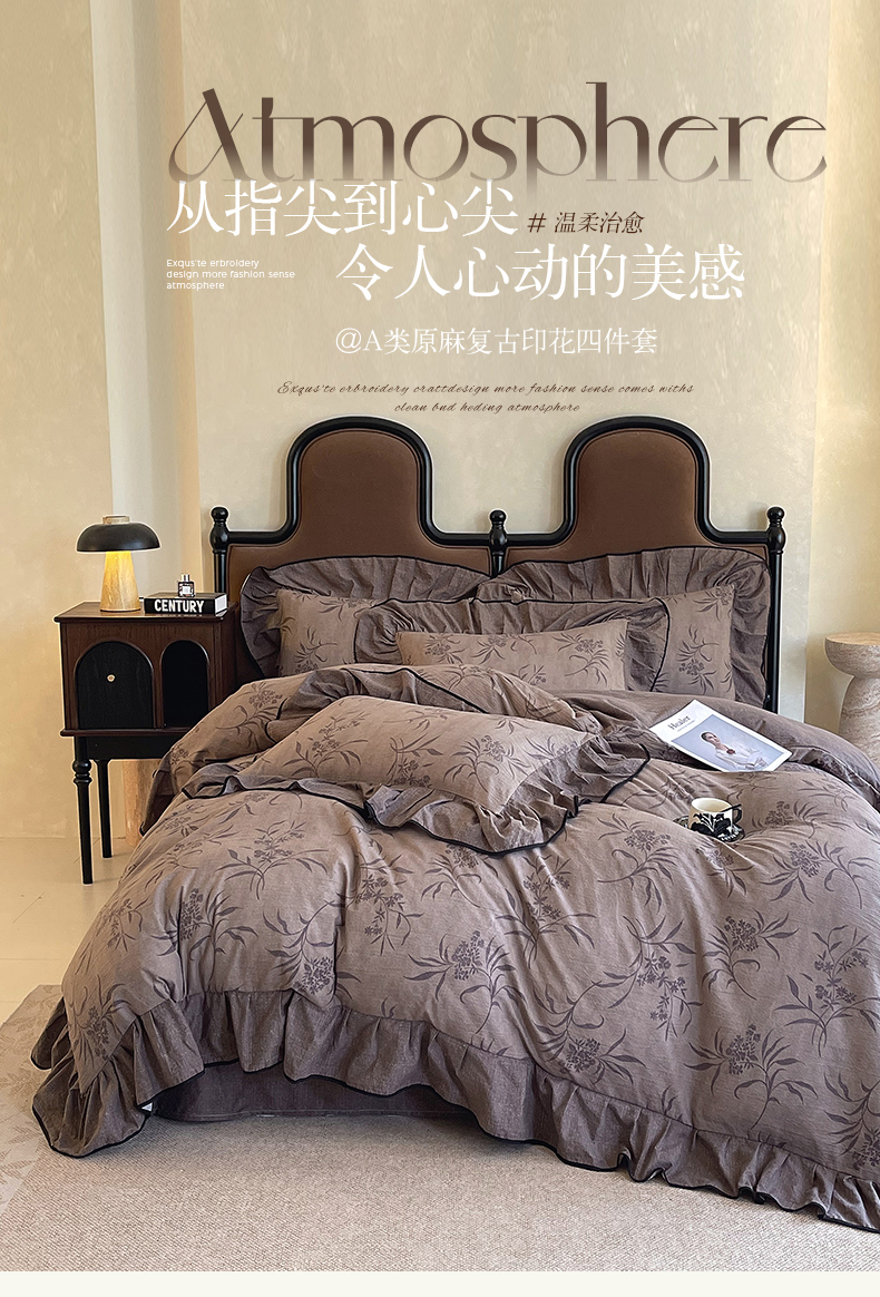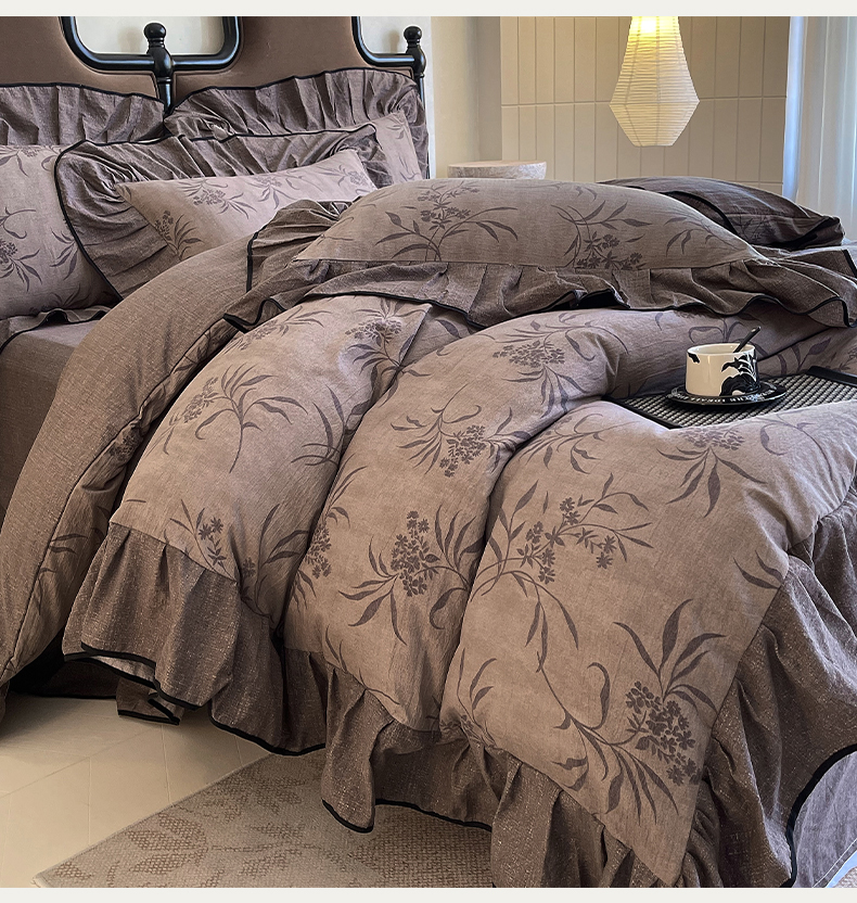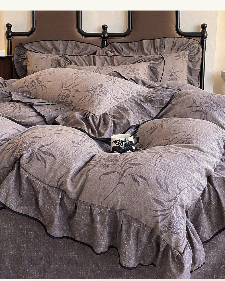 丝芙妮家居(原乐视家纺) 2025新款A类原麻复合印花花边四件套 风野涧