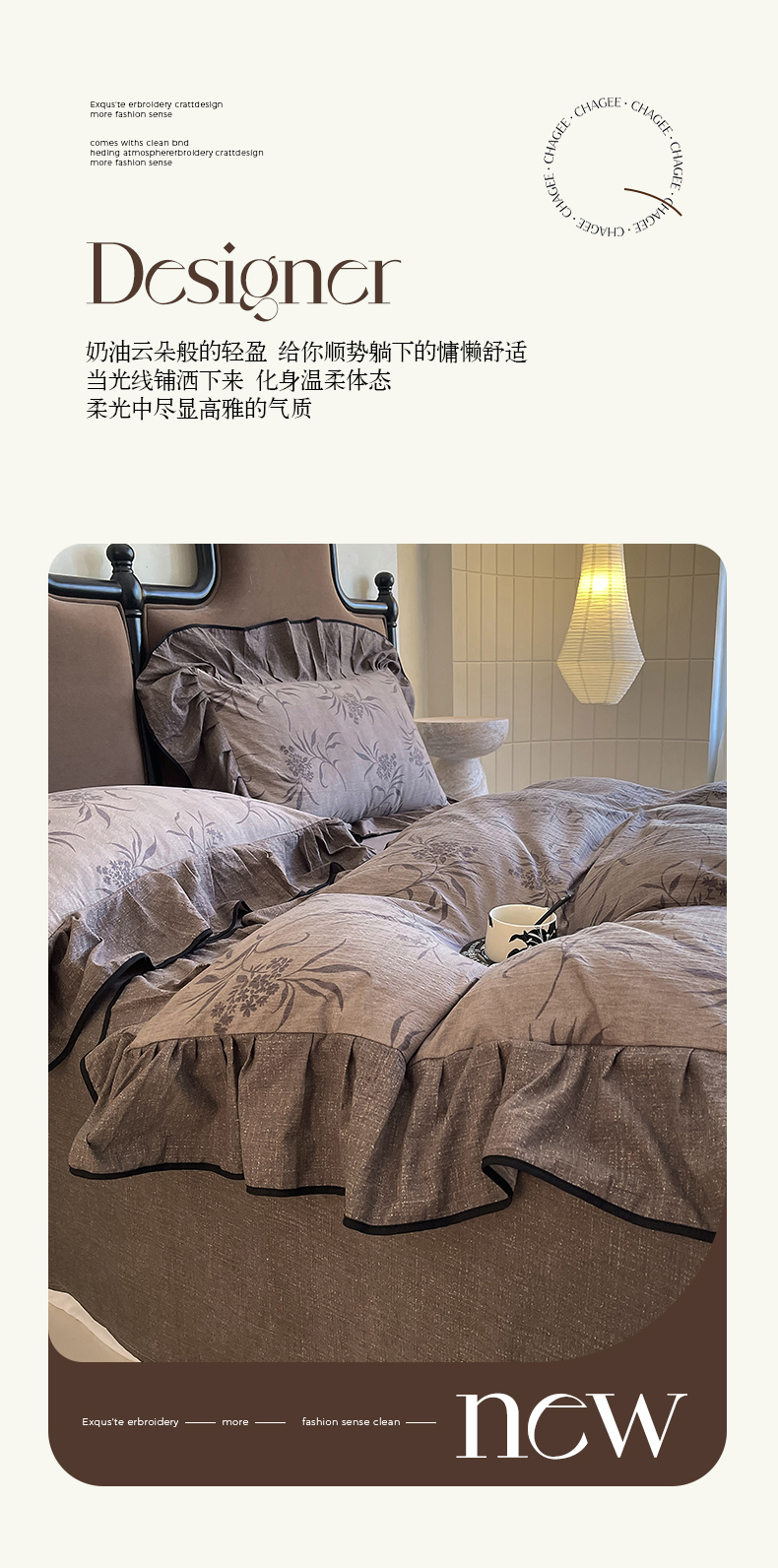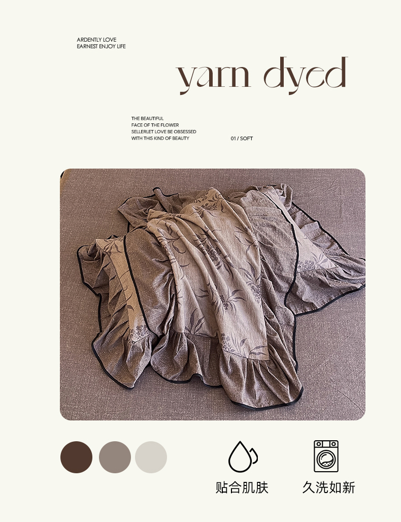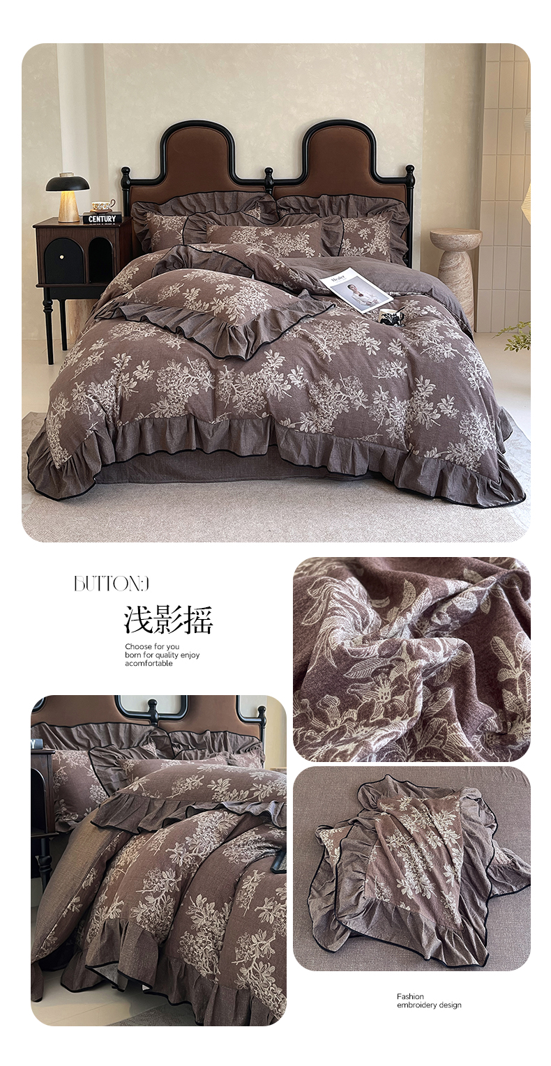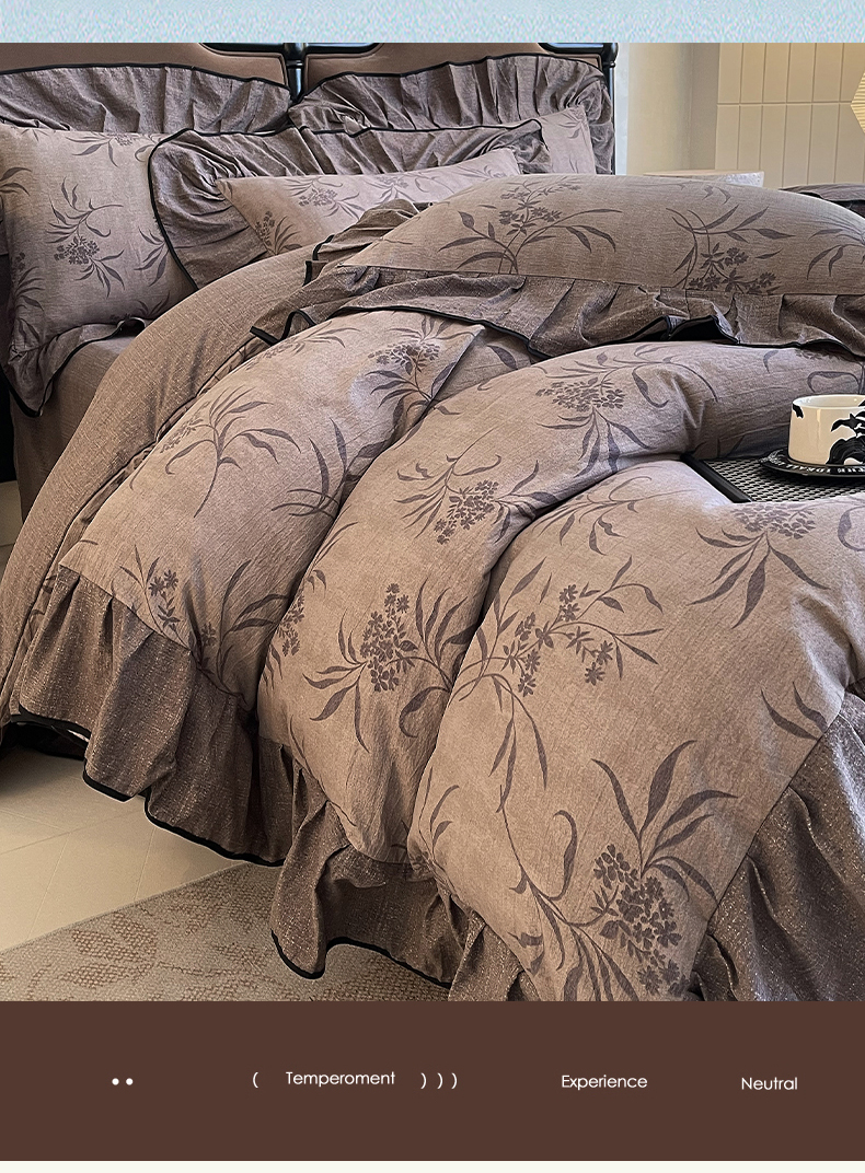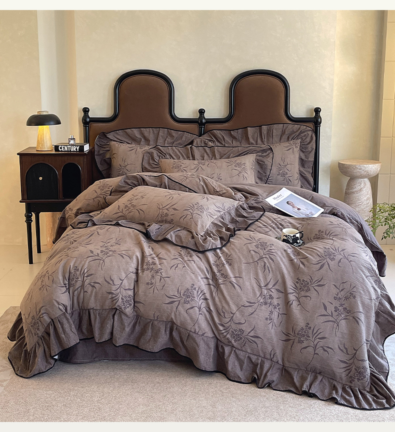 丝芙妮家居(原乐视家纺) 2025新款A类原麻复合印花花边四件套 风野涧