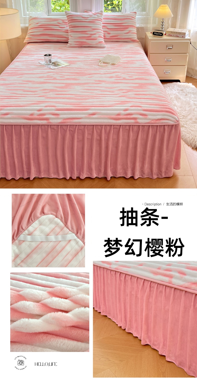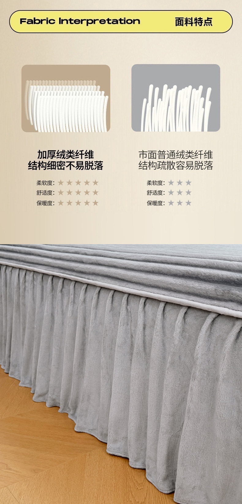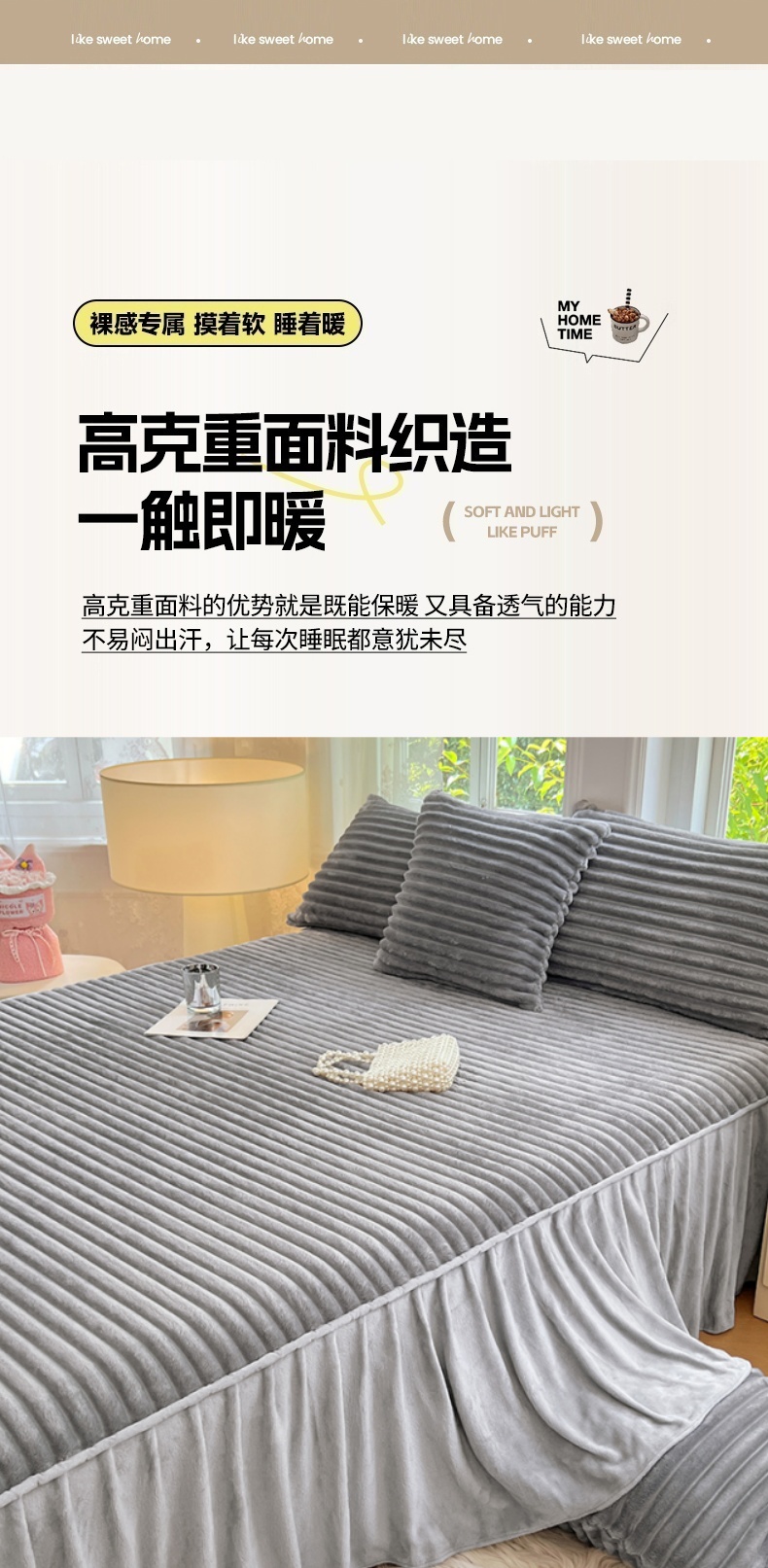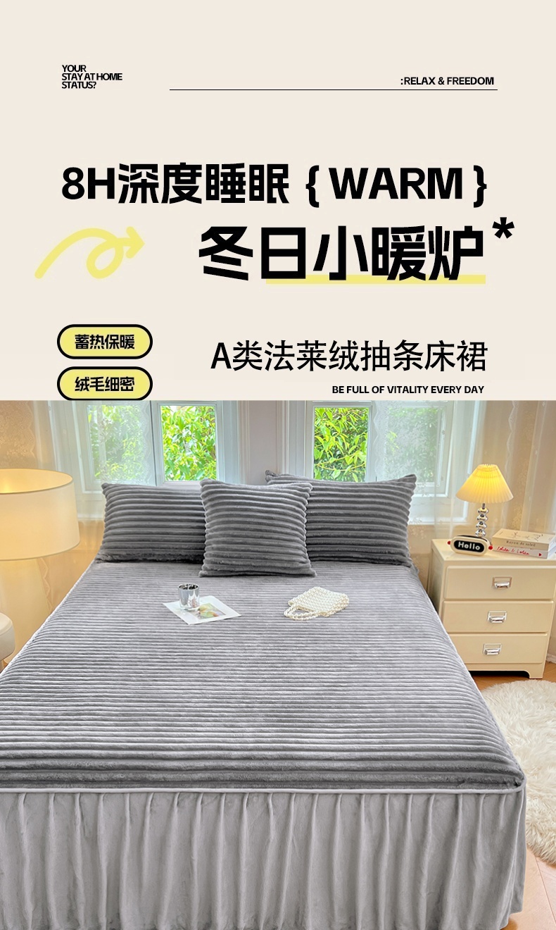 商品名称:圣比熊 2025新款法莱绒床裙法兰绒床垫保护罩牛奶绒兔毛绒床垫床单罩-抽条 法莱绒抽条-烟雨灰