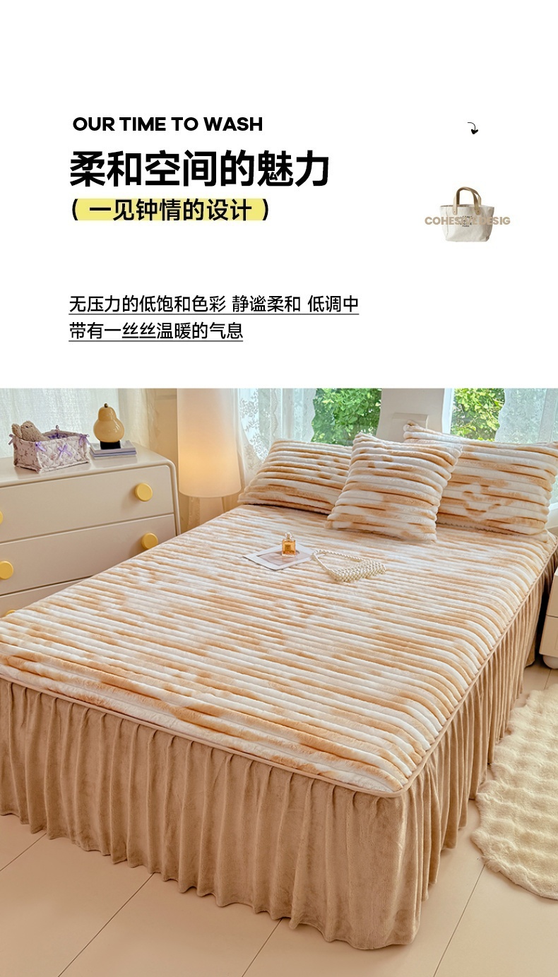 • 91家纺网 家纺一手货源 找家纺 圣比熊 2025新款兔毛绒床裙法兰绒床垫保护罩牛奶绒床垫法莱绒床单罩-抽条 兔毛绒抽条-梦幻奶咖