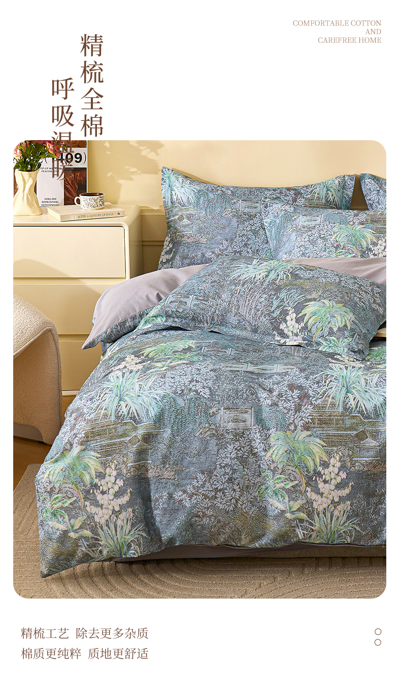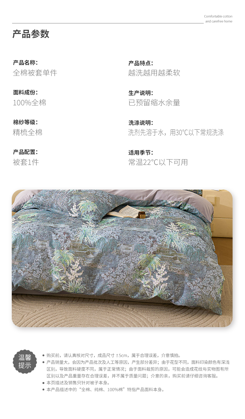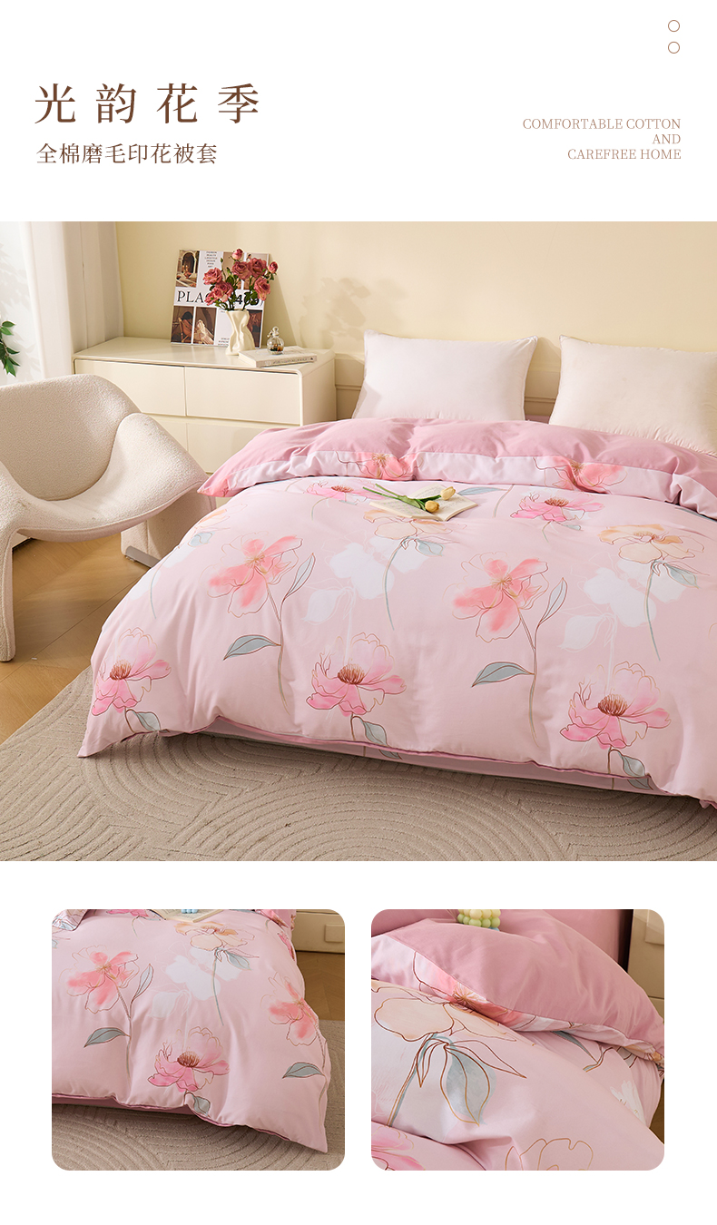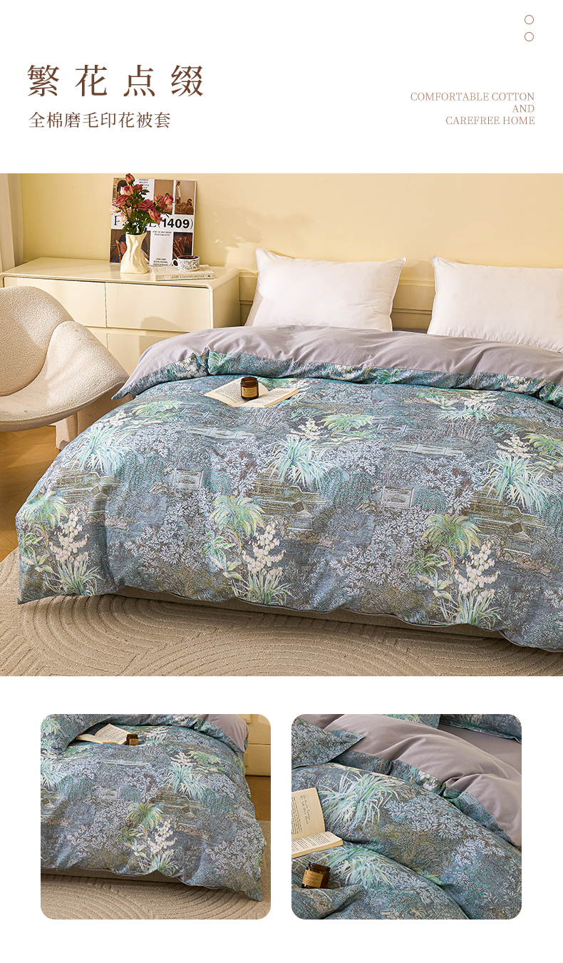 商品名称:元元家居(元元被业) 2025秋冬新款全棉纯棉磨毛印花单被套 繁花点缀