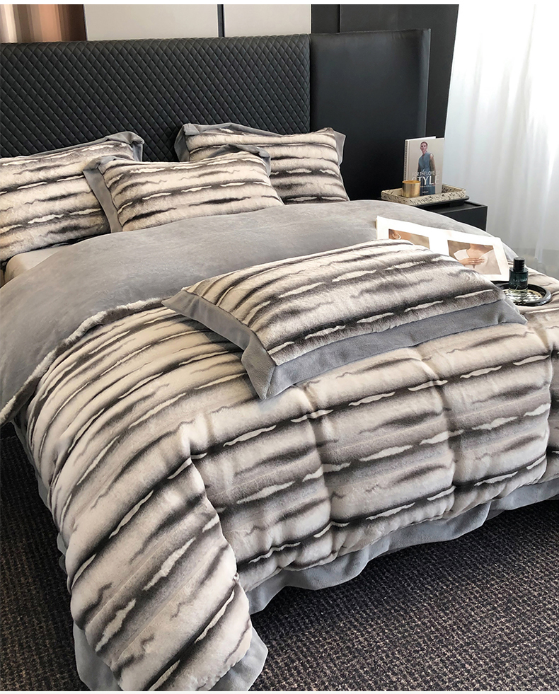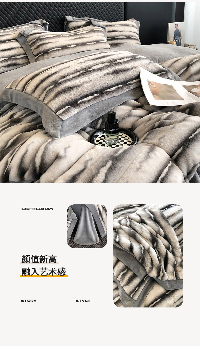 商品名称:懒猫家纺 2025新款兔毛绒拼角四件套-赫拉 赫拉-梧桐灰