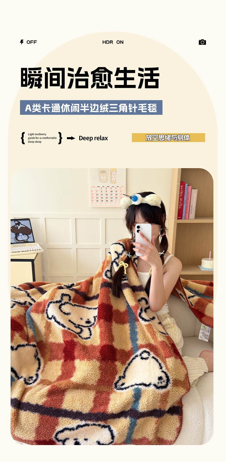 (总)舒隅家纺 2025新款A类卡通休闲半边绒三角针毛毯,假日熊猫,莓果小猫-咖,线条小狗-蓝,线条小狗-红,森系萌宠-红,森系萌宠-紫,莓果小猫-粉,小熊软糖