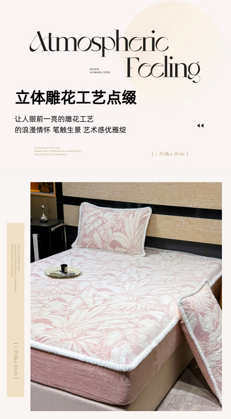 • 91家纺网 家纺一手货源 找家纺 鹿辉家居(原吉欧力) 2025新款牛奶绒雕花兔毛绒包边床笠 繁花朵朵